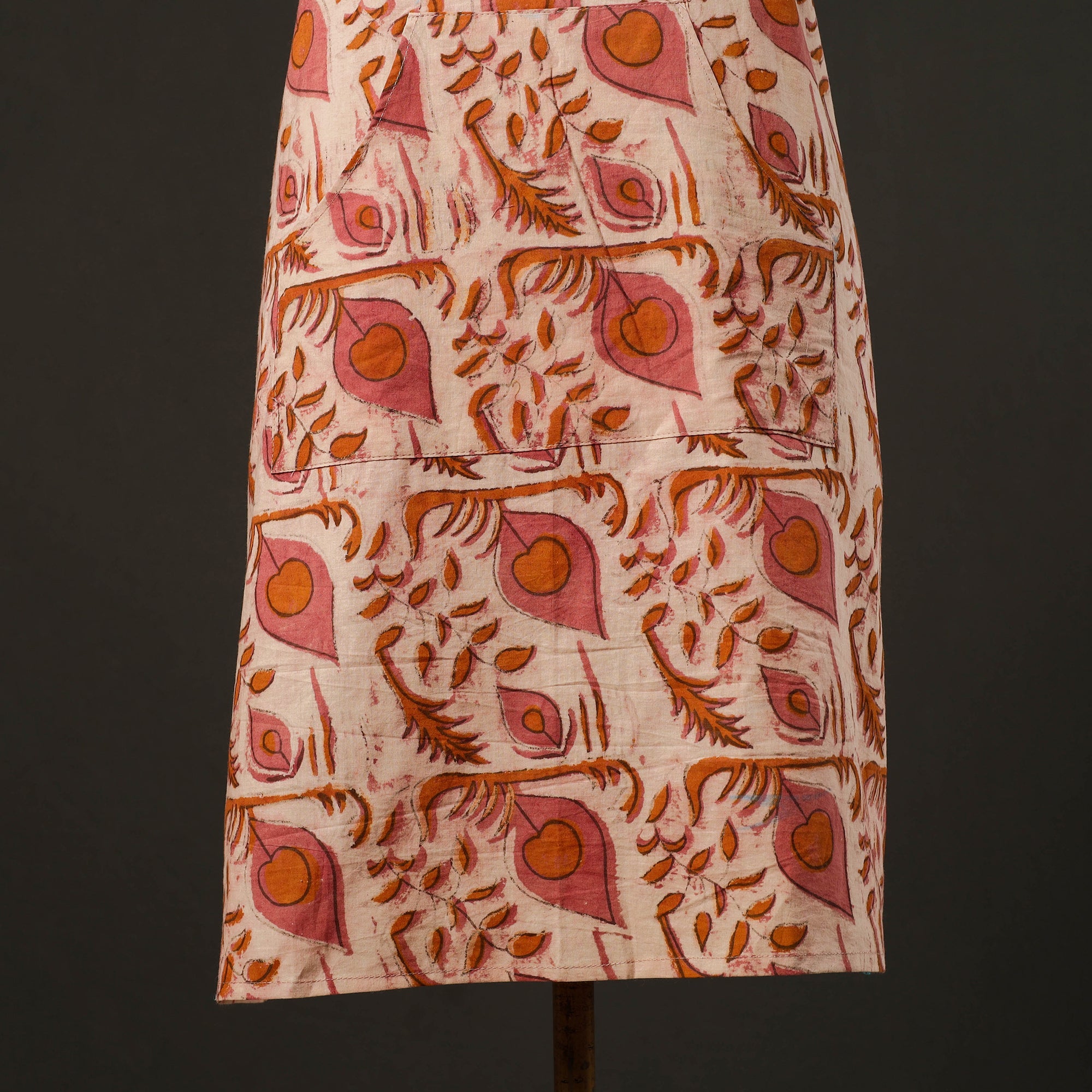 This pink bagru print cotton apron with pocket, crafted with traditional bagru block printing, combines cultural artistry with everyday functionality. Adorned with bagru prints, it features a convenient front pocket and adjustable straps for a comfortable fit. Perfect for cooking, baking, or grilling, this apron adds style and convenience to your kitchen essentials.