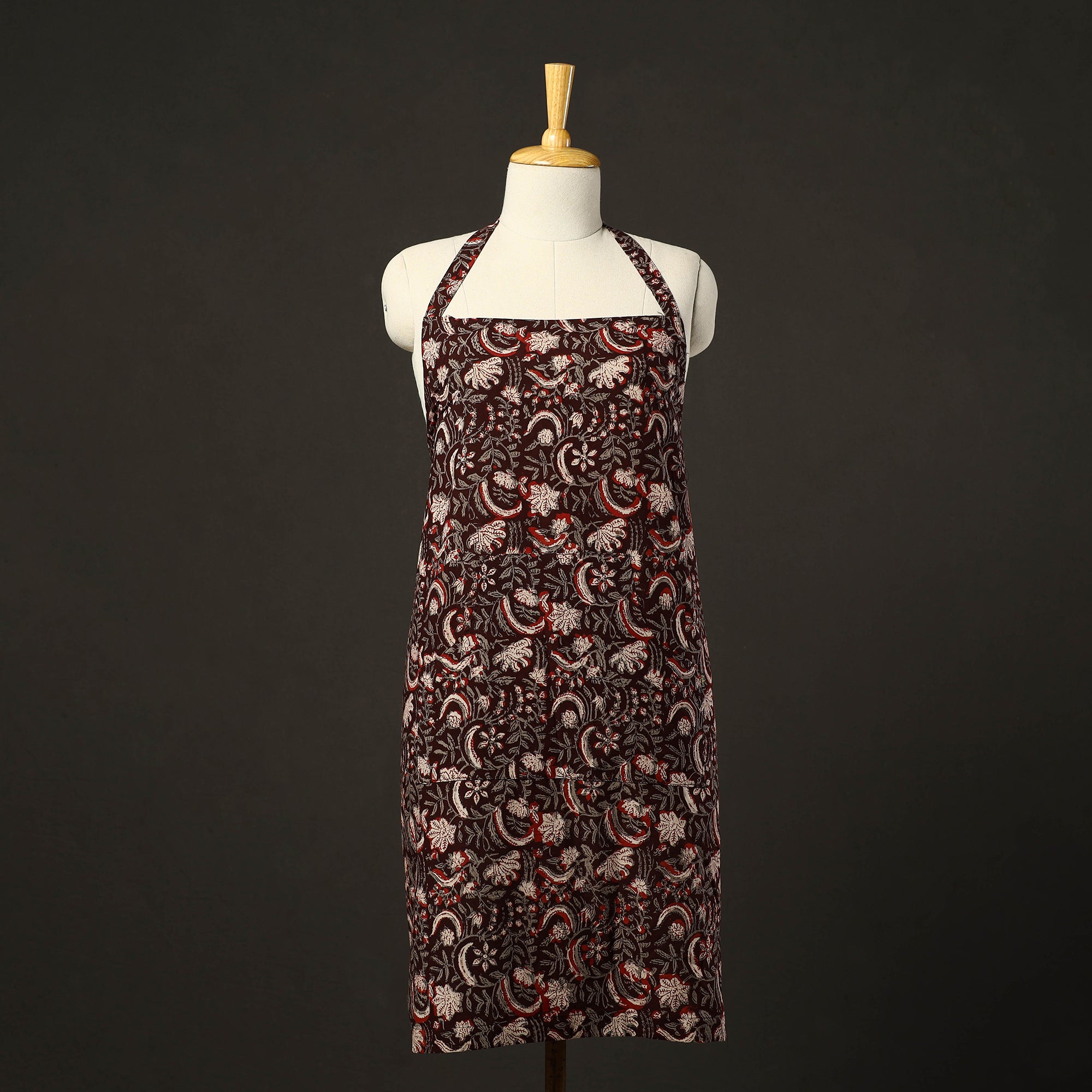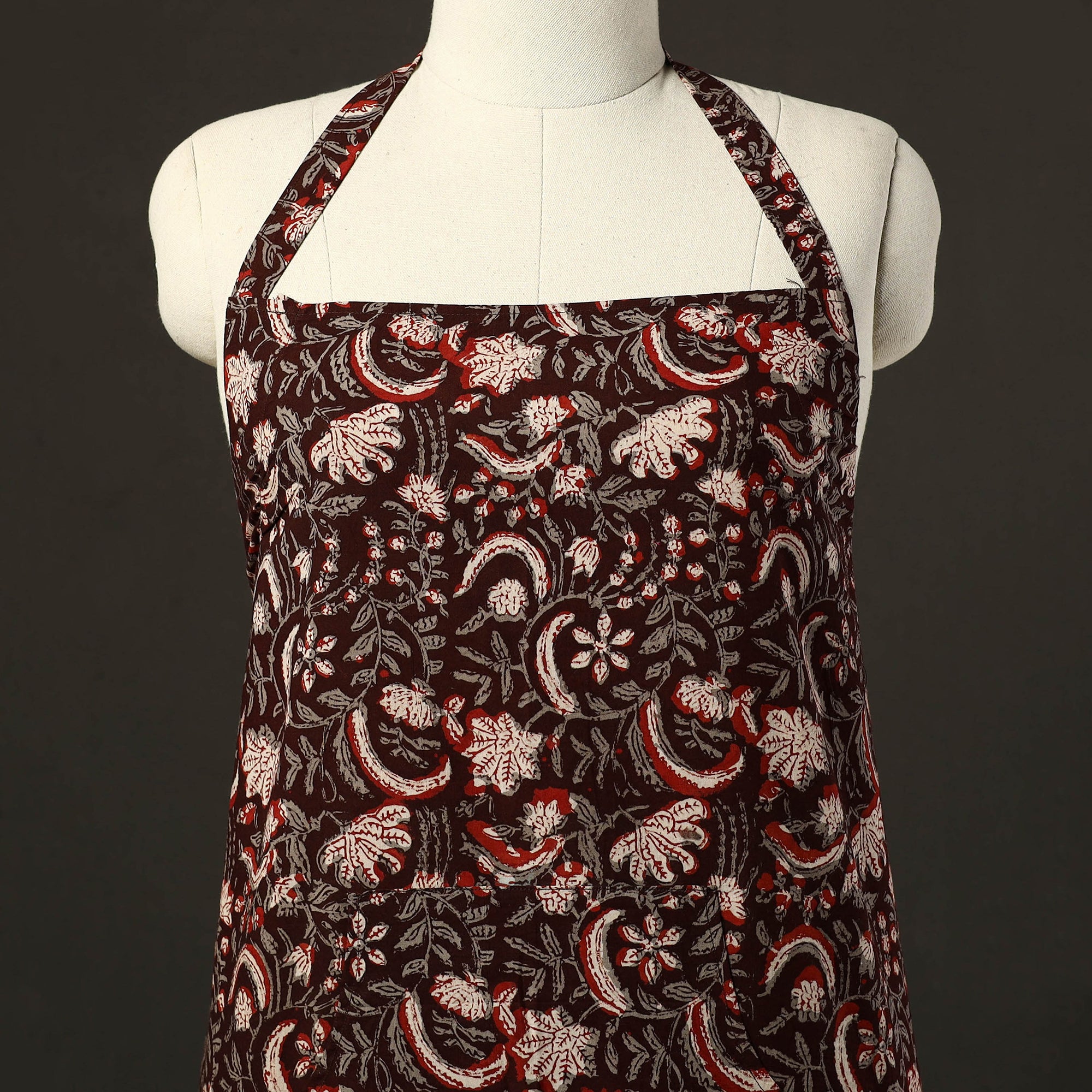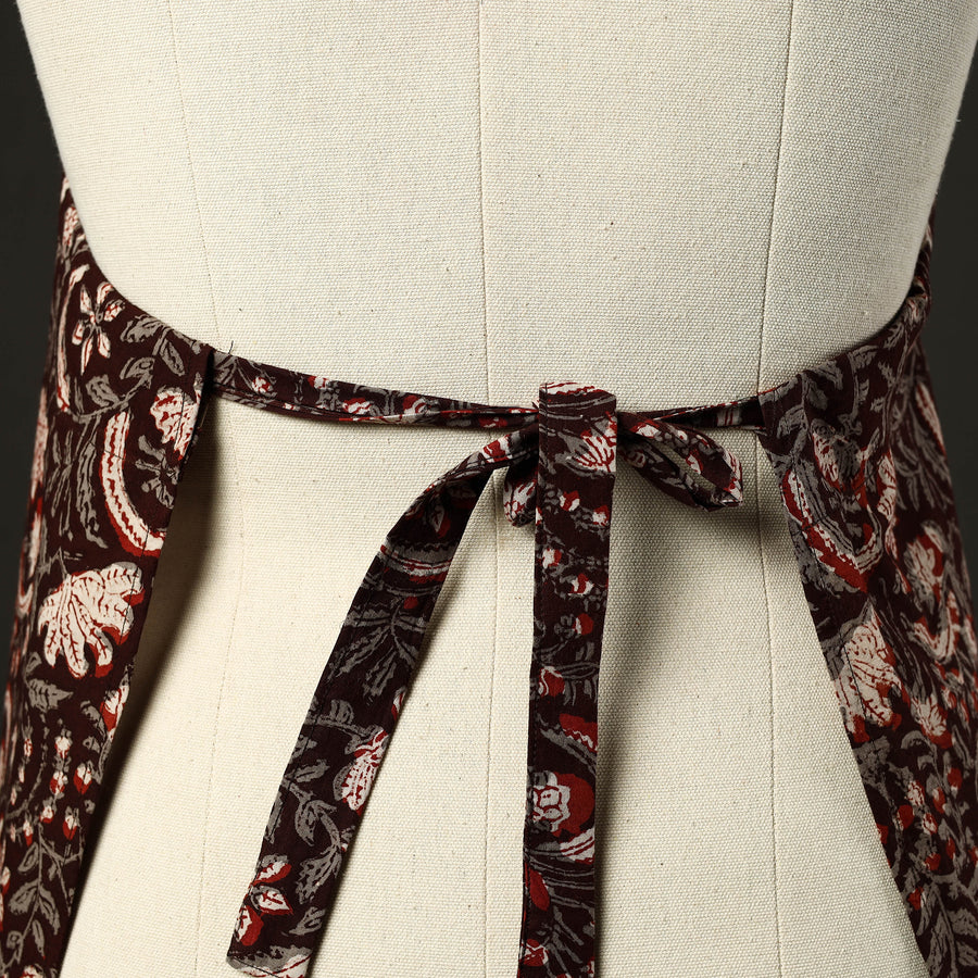 This brown bagru print cotton apron with pocket, crafted with traditional bagru block printing, combines cultural artistry with everyday functionality. Adorned with bagru prints, it features a convenient front pocket and adjustable straps for a comfortable fit. Perfect for cooking, baking, or grilling, this apron adds style and convenience to your kitchen essentials.