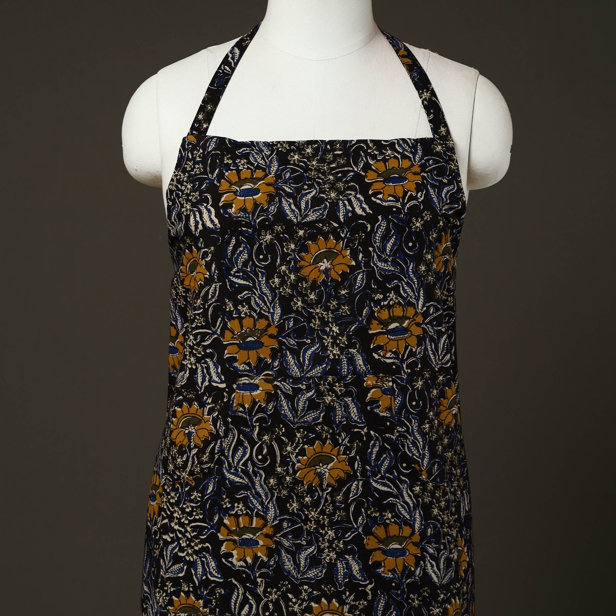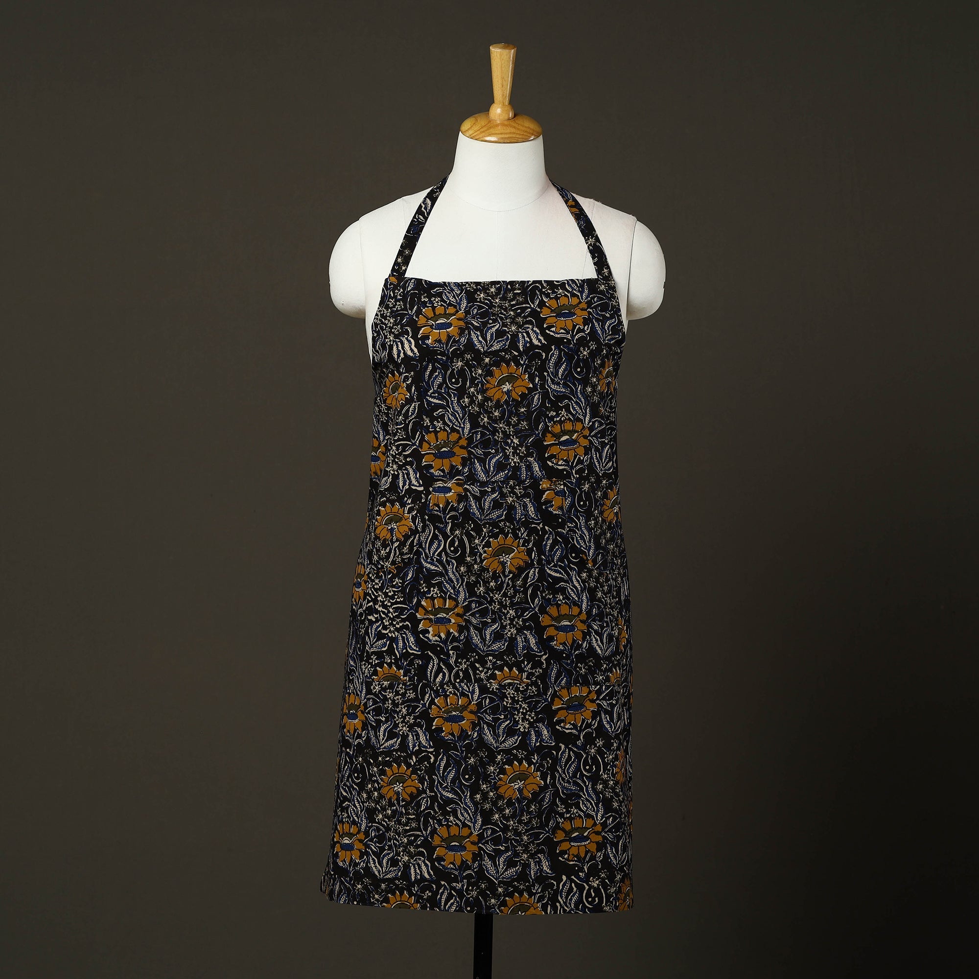 Upgrade your kitchen style with this black bagru block print cotton apron with pocket, featuring traditional hand-block printing techniques from Rajasthan. Made from soft, breathable cotton, it is lightweight. Designed to protect your clothing from splashes and spills, this handmade kitchen apron offers an adjustable neck strap and a front pocket for added convenience, making it ideal for daily cooking and baking.