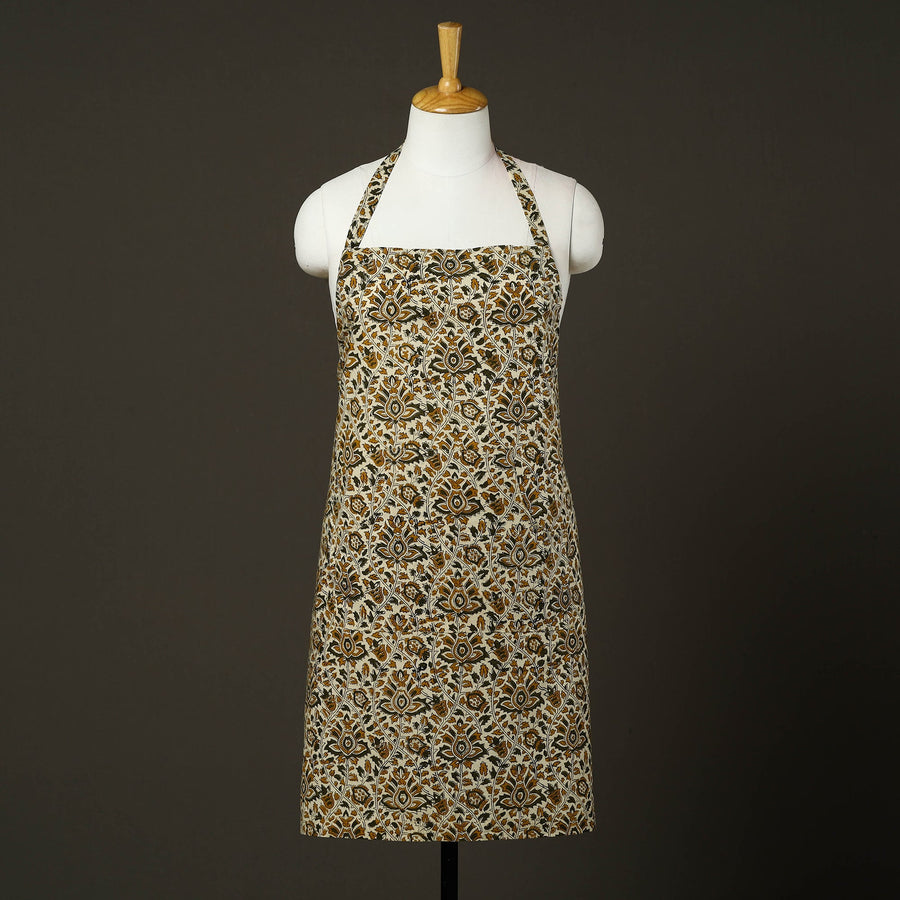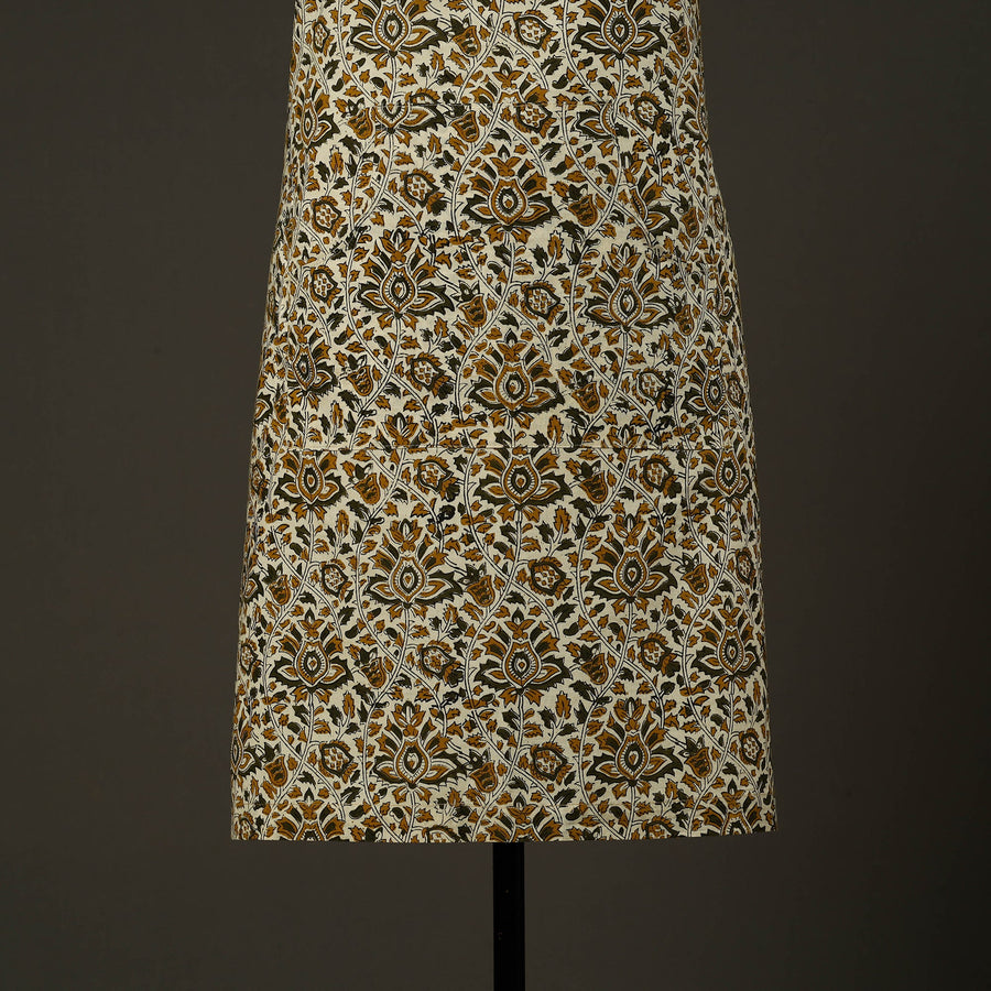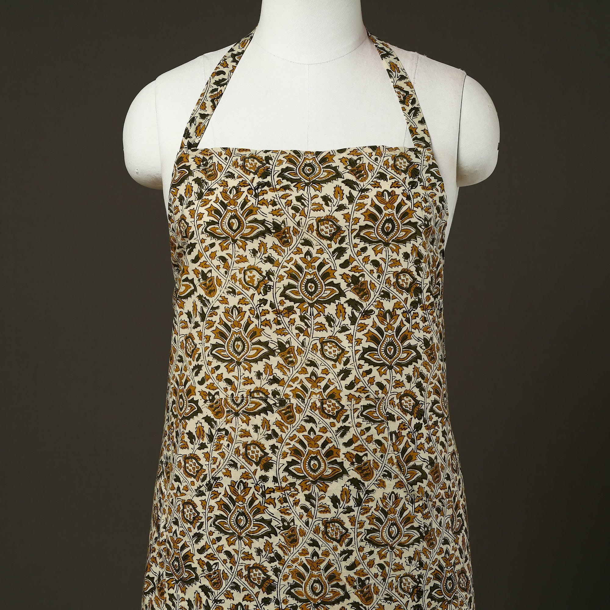 Upgrade your kitchen style with this beige bagru block print cotton apron with pocket, featuring traditional hand-block printing techniques from Rajasthan. Made from soft, breathable cotton, it is lightweight. Designed to protect your clothing from splashes and spills, this handmade kitchen apron offers an adjustable neck strap and a front pocket for added convenience, making it ideal for daily cooking and baking.