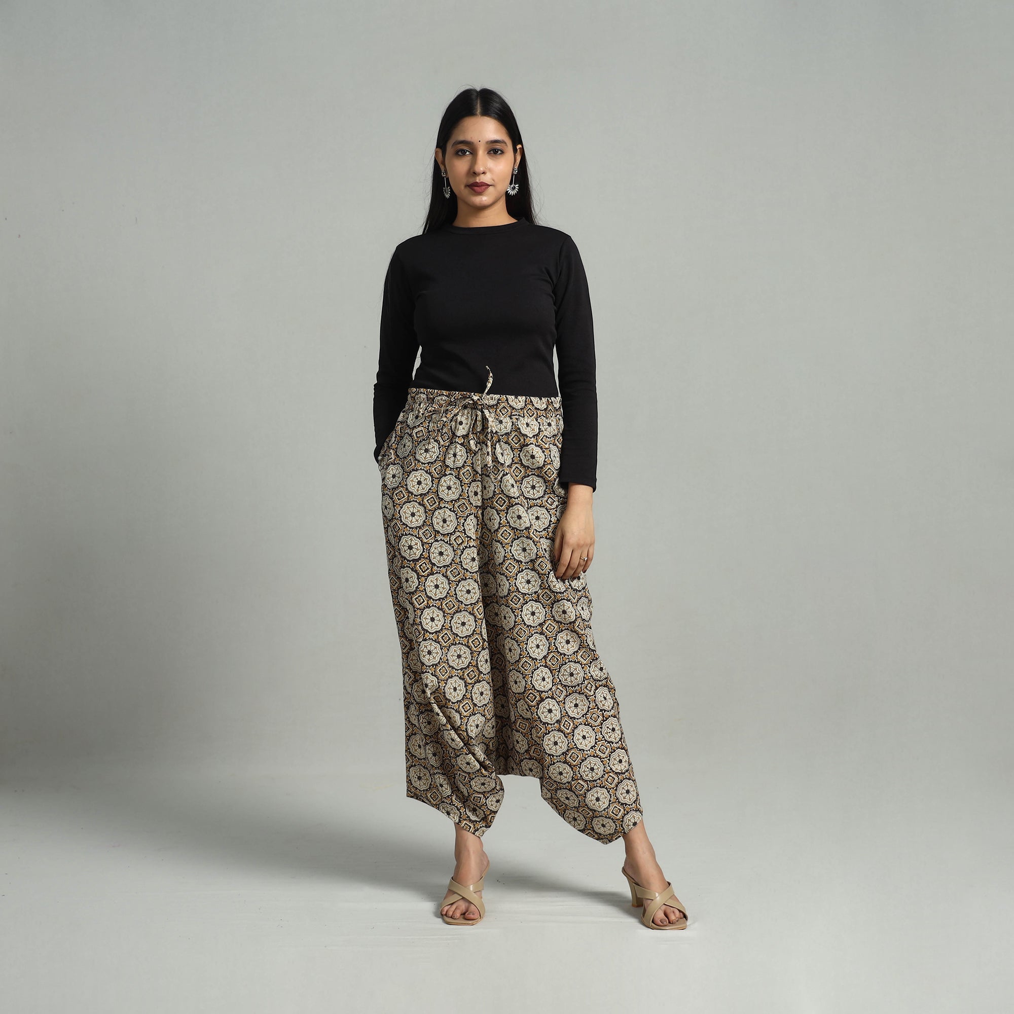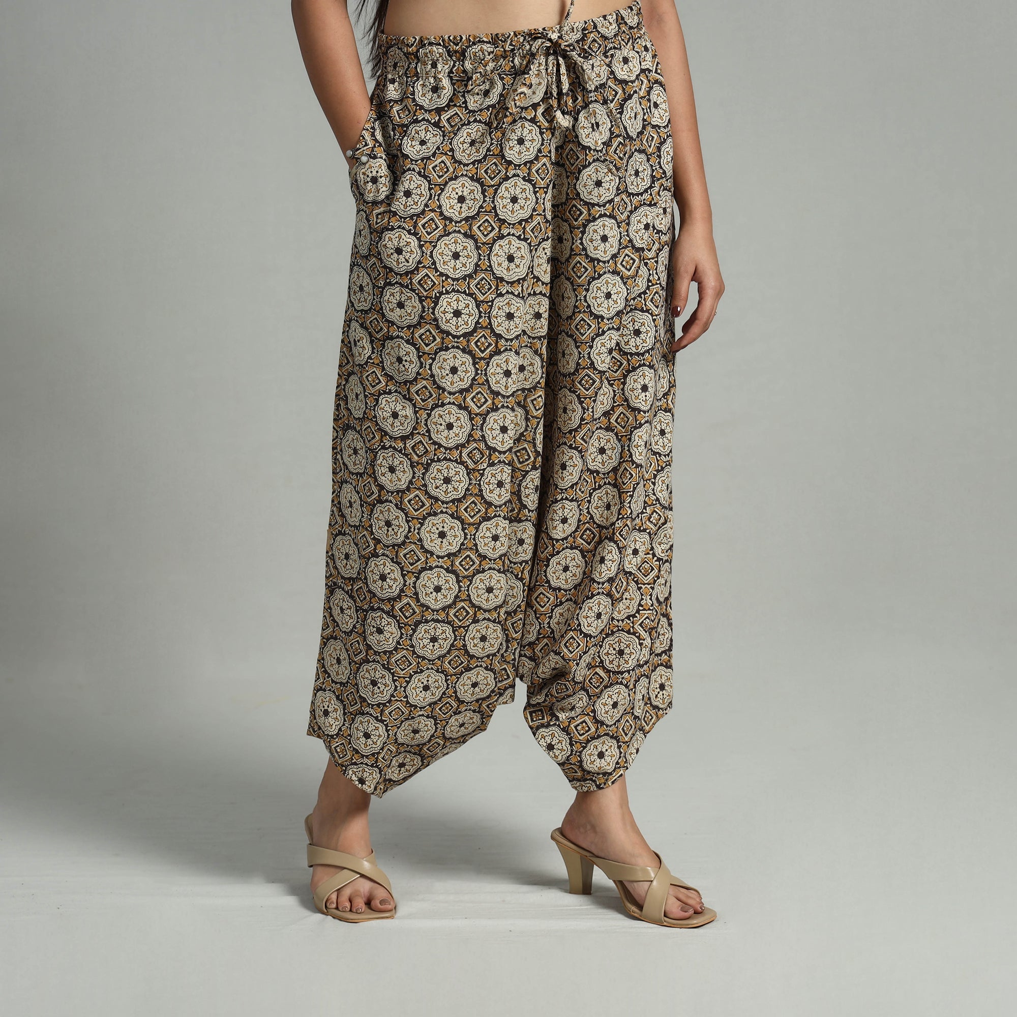 Bagru block print cotton elasticated harem pant. Crafted with natural dyes and elastic waist, it’s perfect for daily wear and special outings. This harem pant is inspired by traditional bagru techniques from Rajasthan, bringing cultural richness to your wardrobe. With two side pockets for added functionality, it combines style with convenience.