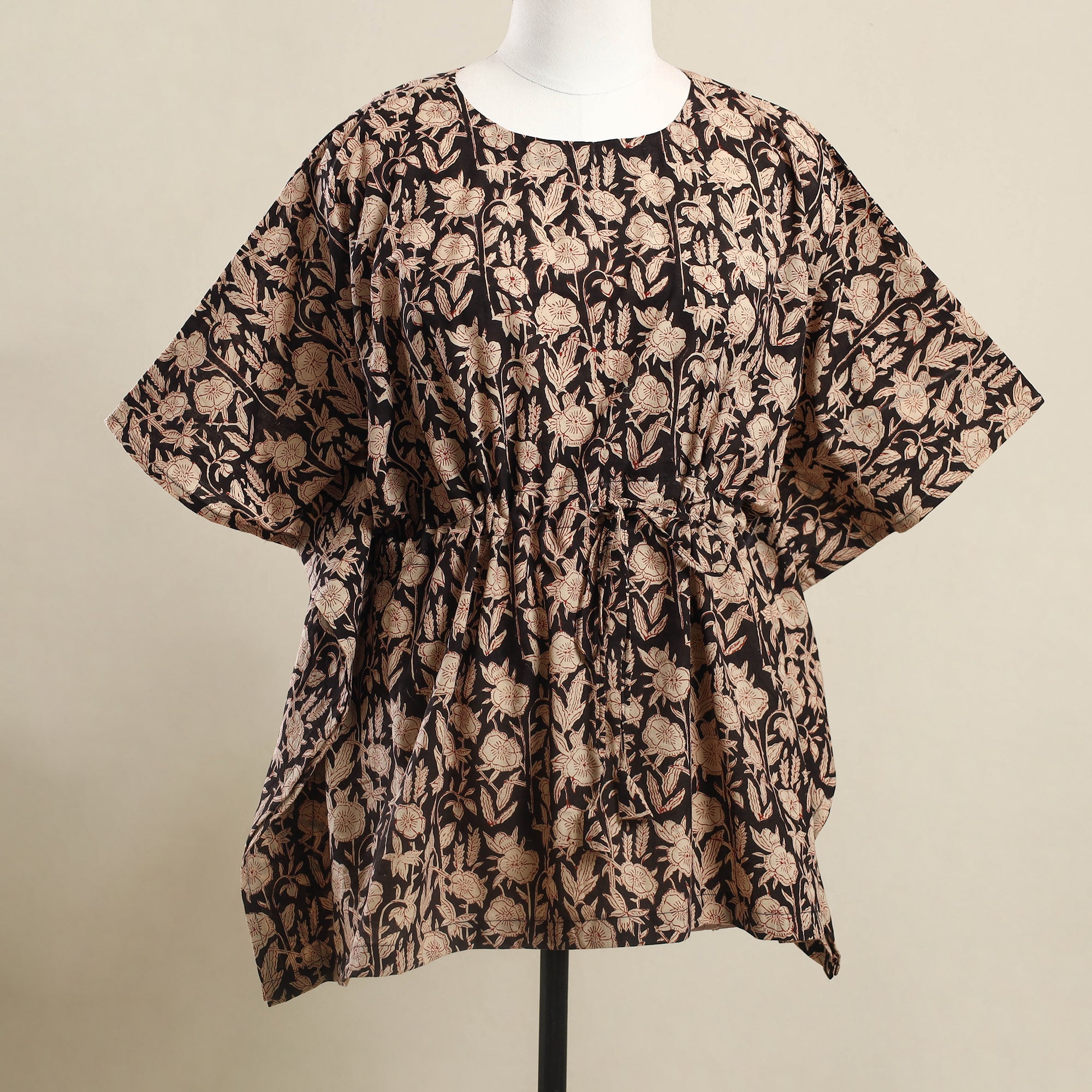 Step into comfort with this beige bagru block print cotton kaftan your new go-to for laid back days. The soft, airy cotton keeps you cool, while the relaxed silhouette and drawstring waist give you that perfect comfy meets chic vibe. Whether you're chilling at home or strolling through a weekend market, this kaftan fits right in.
