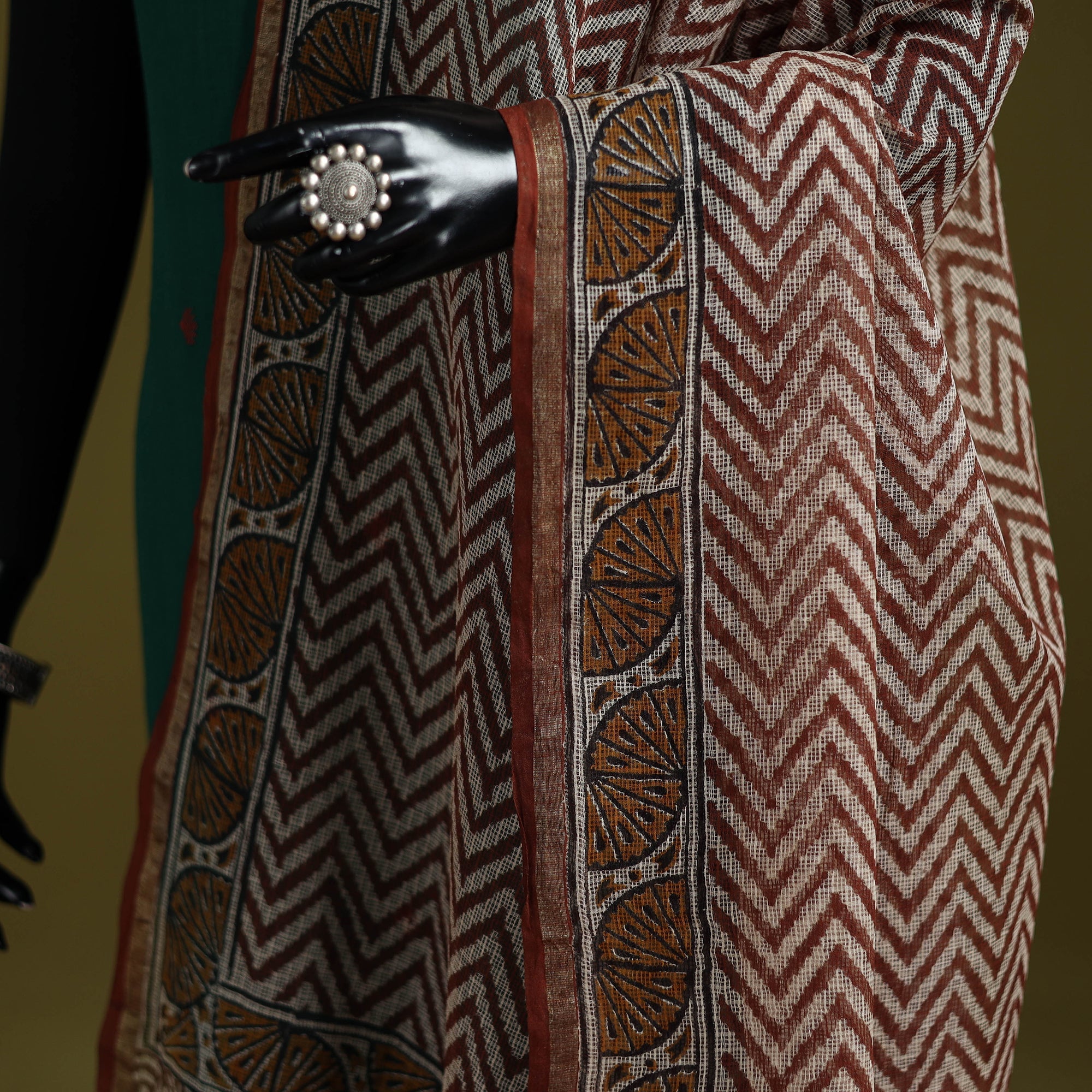 • Beige - kota doria cotton hand bagru dupatta 11