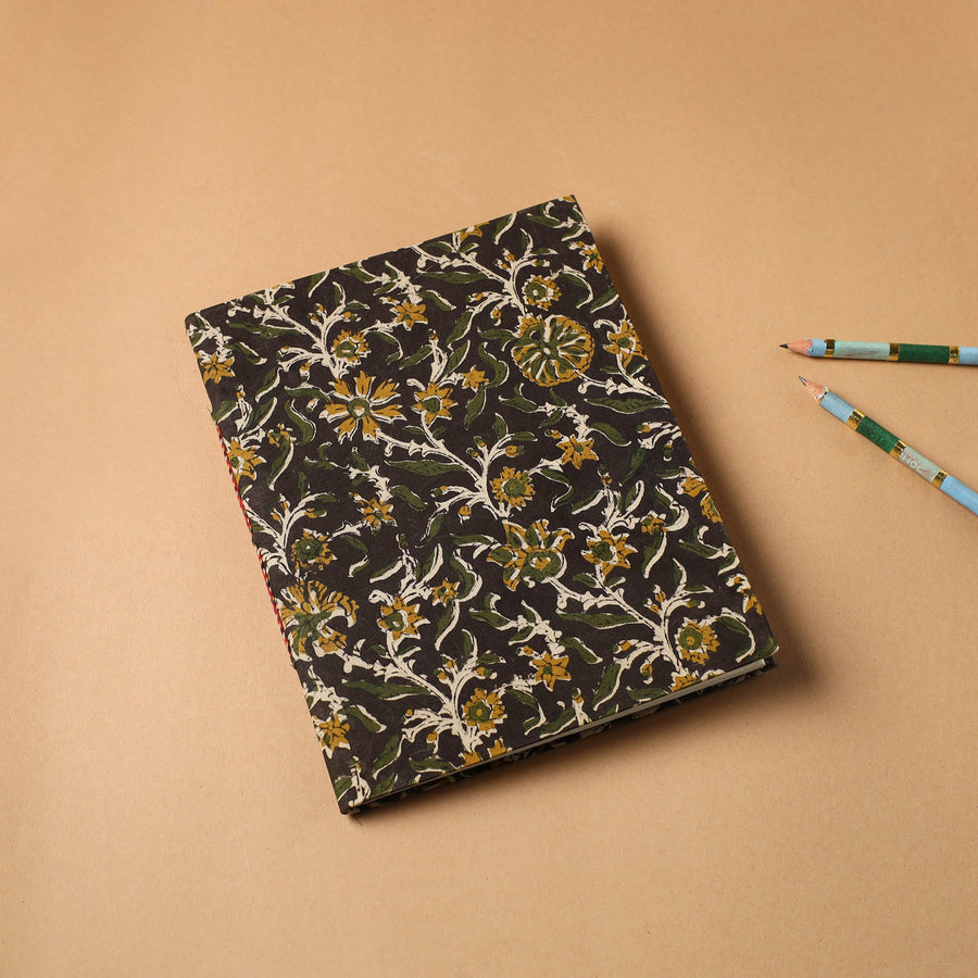 | Material | This brown handmade paper notebook features a hardbound bagru block-printed cotton fabric cover and is bound using traditional bookbinding techniques. The pages are crafted from recycled cotton and natural fibers, offering a sustainable and smooth writing surface. It's ideal for journaling, creative writing, or gifting. |