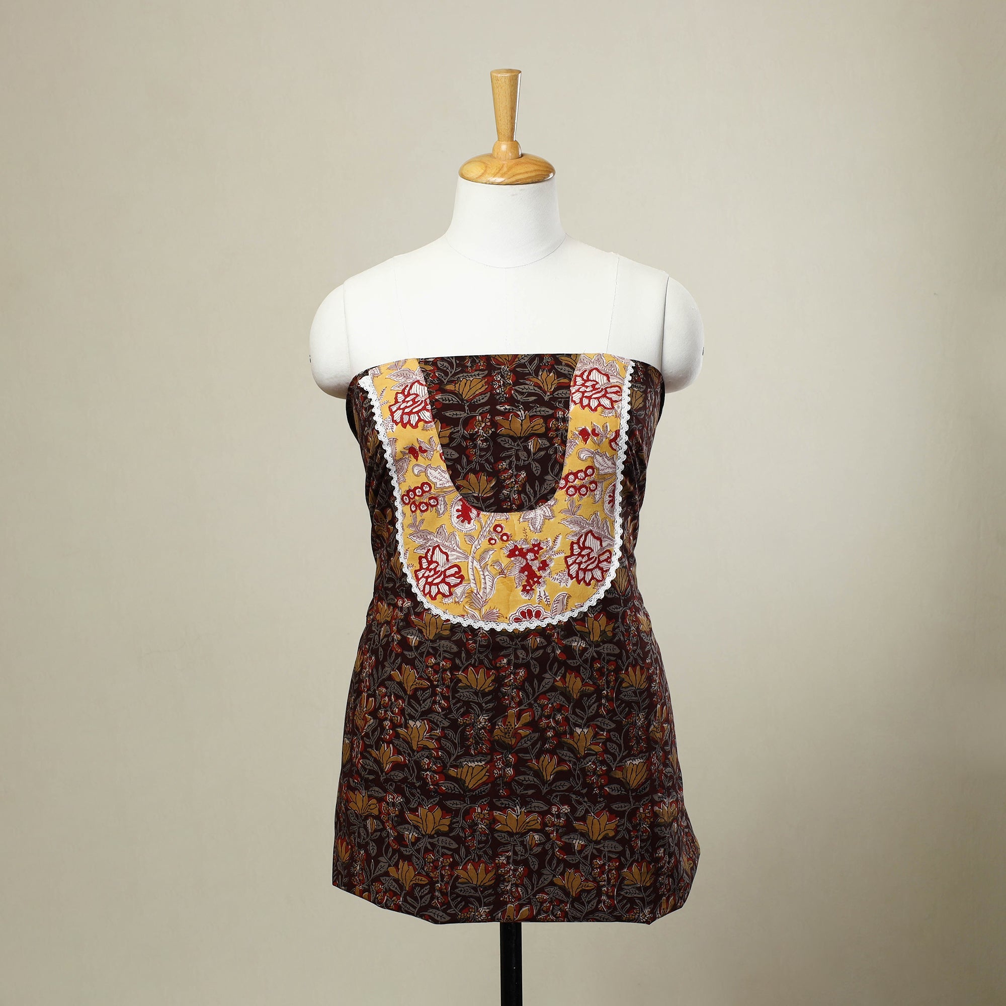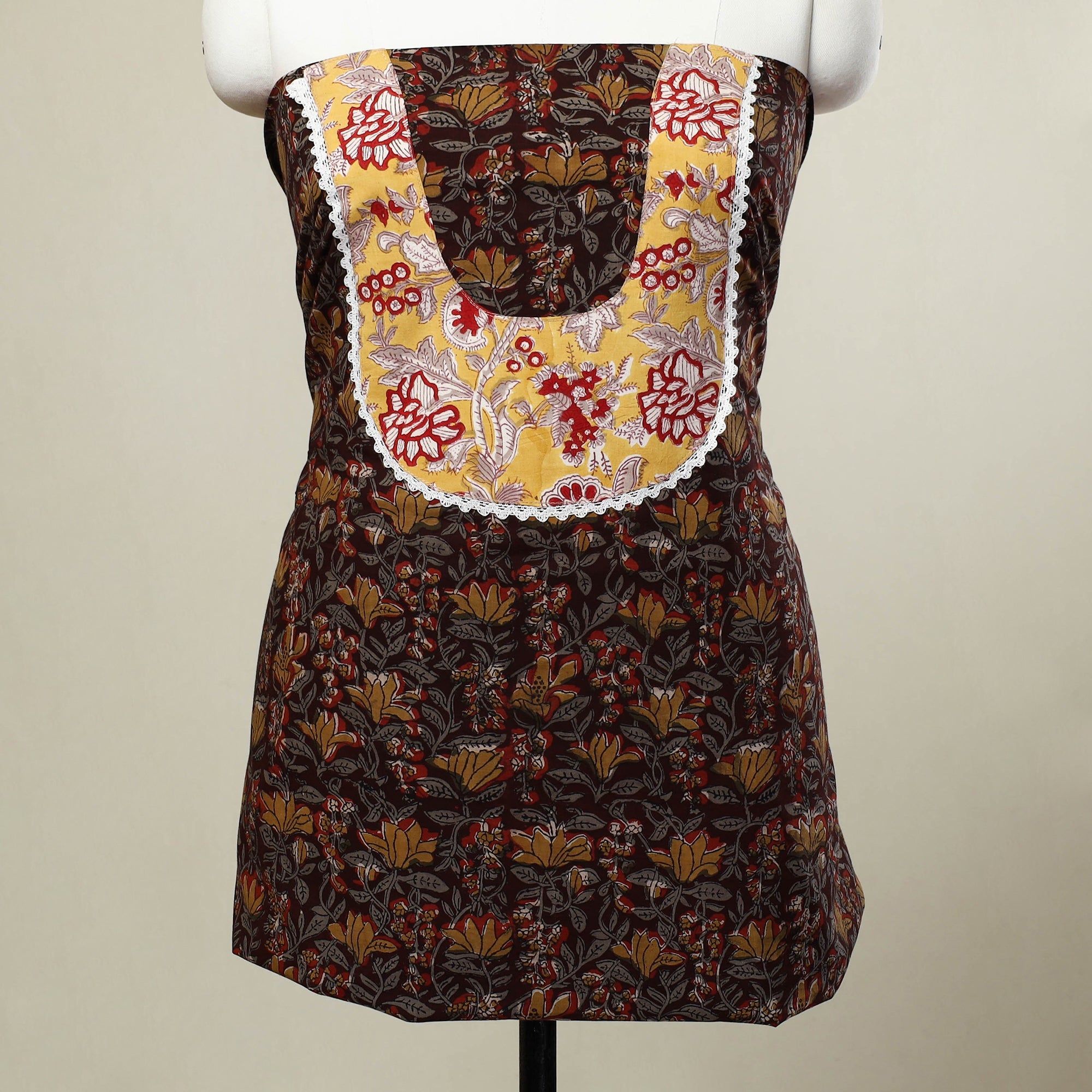 This brown bagru print patchwork cotton kurta material, with its vibrant and detailed block prints, is made from soft, breathable cotton, offering both comfort and cultural elegance. The intricate designs reflect the region’s traditional craftsmanship, making it perfect for creating custom kurtas that blend heritage with modern style.