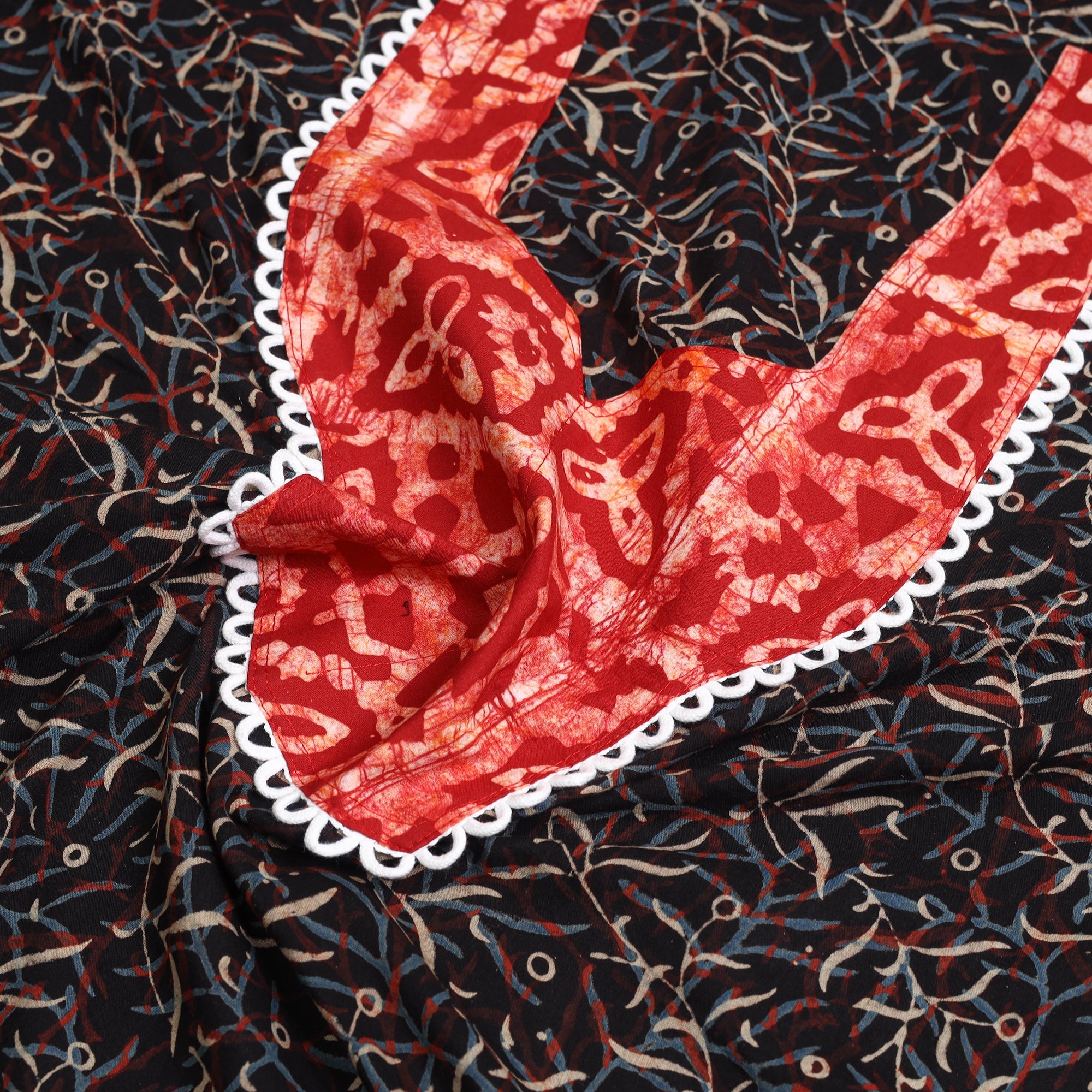 Celebrate your roots in style with this stunning black bagru patchwork cotton fabric. Designed using age old block printing techniques, it brings a timeless charm to your ethnic wardrobe. Create custom kurtas that reflect heritage and individuality.