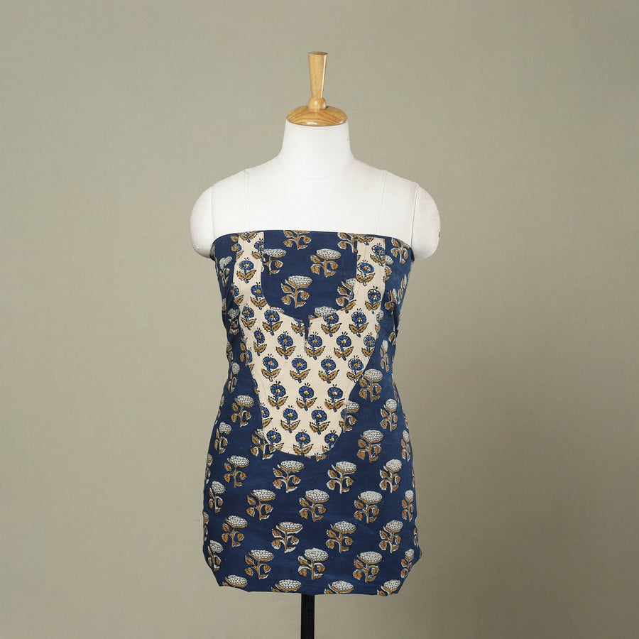 Celebrate your roots in style with this stunning blue agru patchwork cotton fabric. Designed using age old block printing techniques, it brings a timeless charm to your ethnic wardrobe. Create custom kurtas that reflect heritage and individuality.