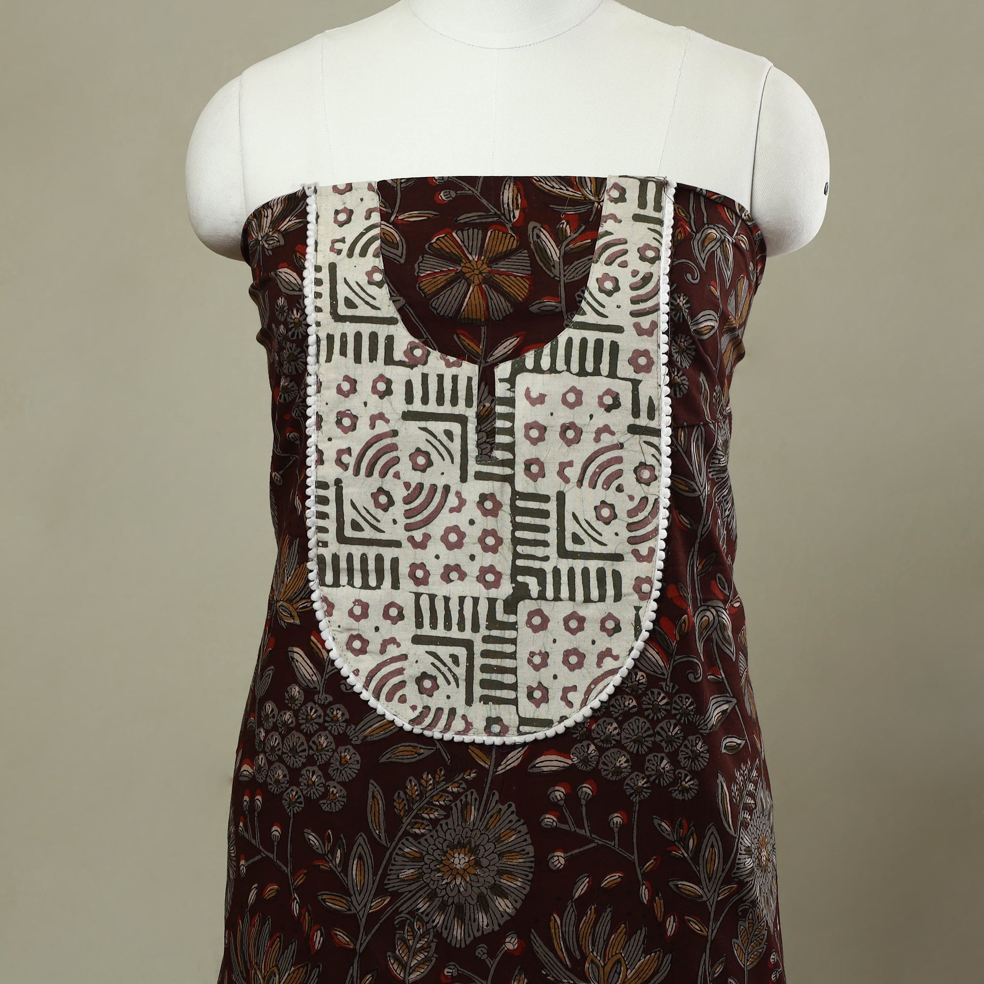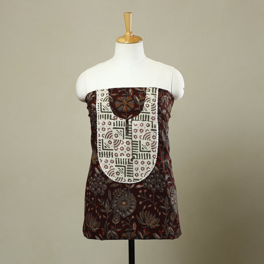 Add a cultural flair to your wardrobe with this brown bagru block print cotton kurta fabric. The patchwork design and rich detailing bring alive age-old artistry. Perfect for making kurtas that are as stylish as they are rooted in heritage, this fabric ensures comfort, vibrancy, and timeless appeal.