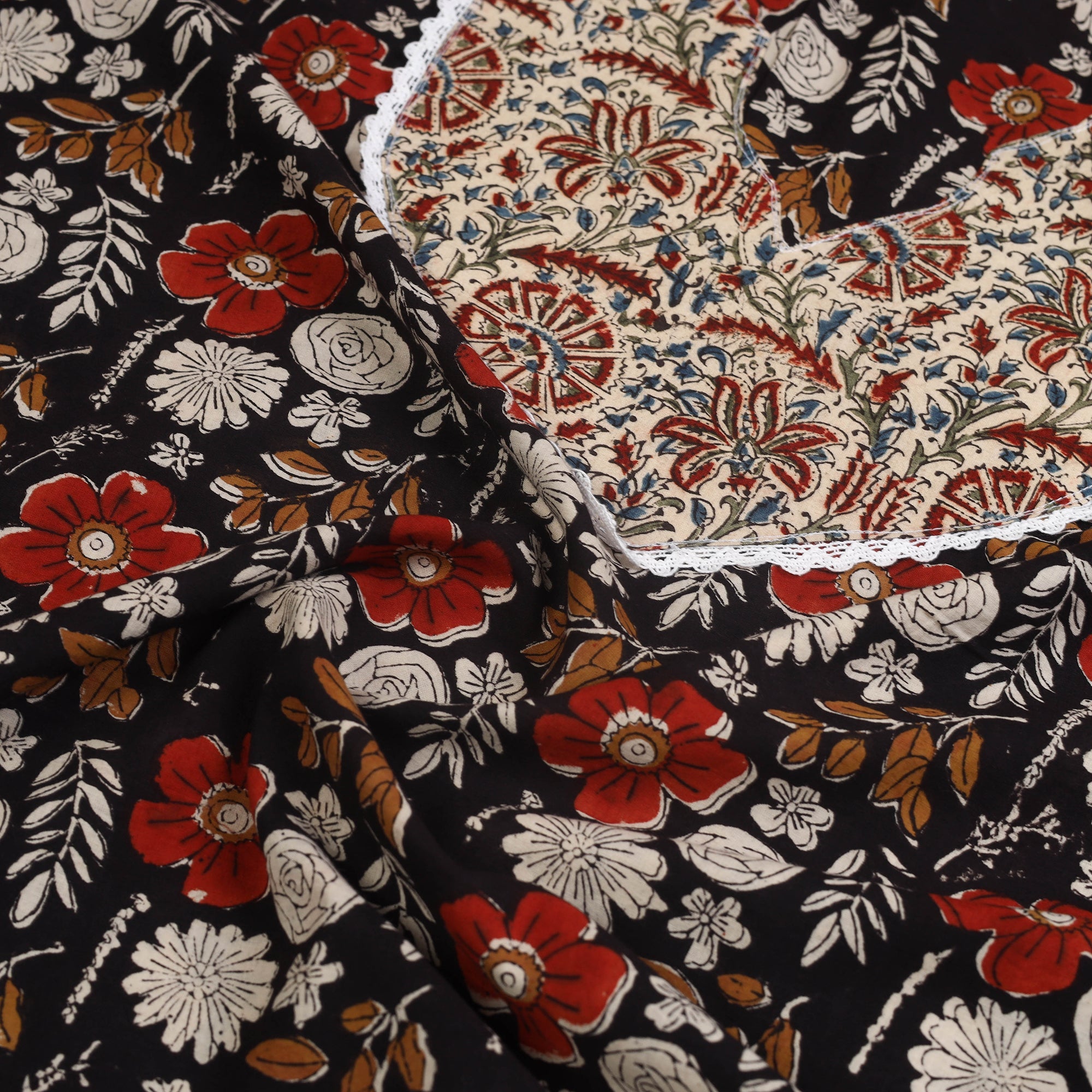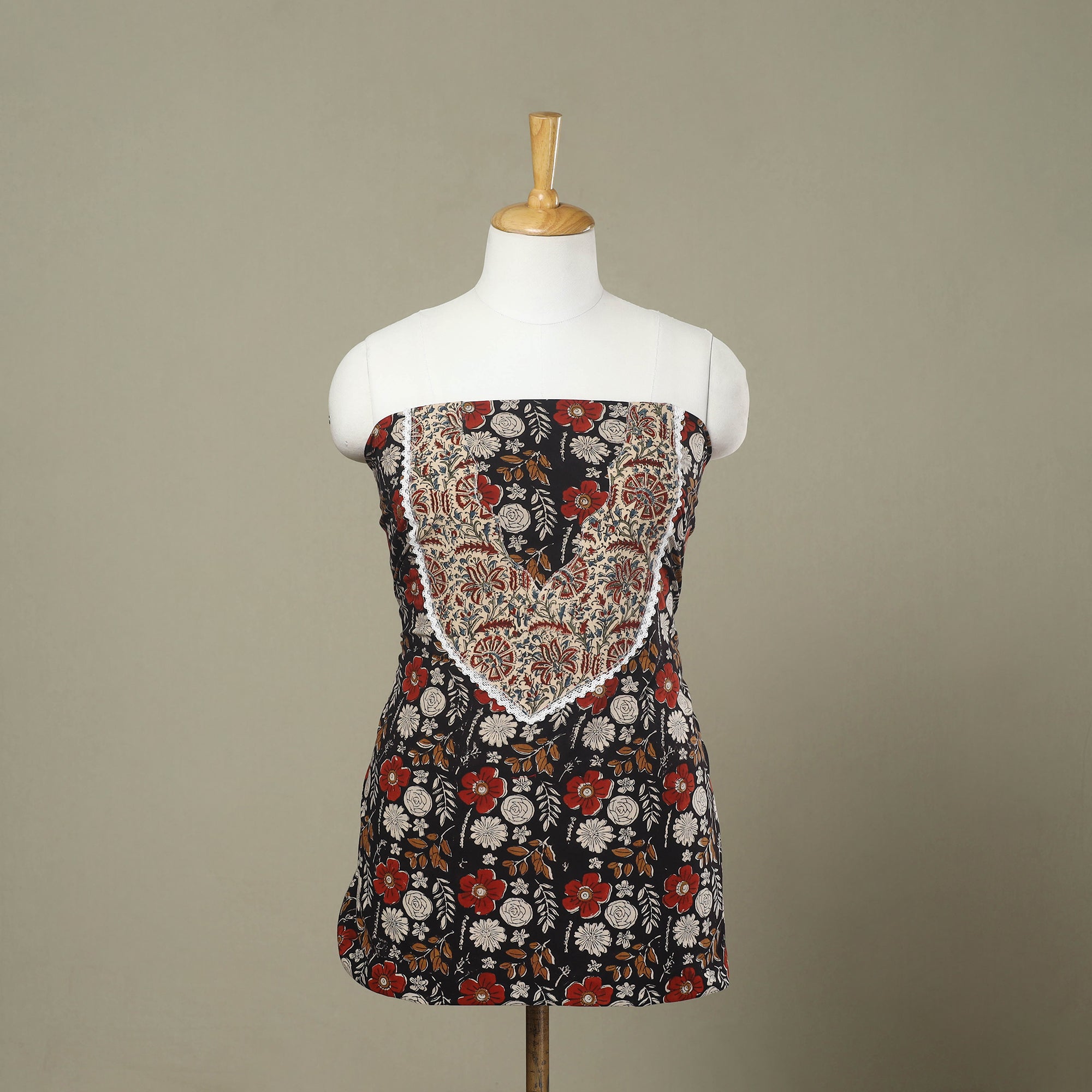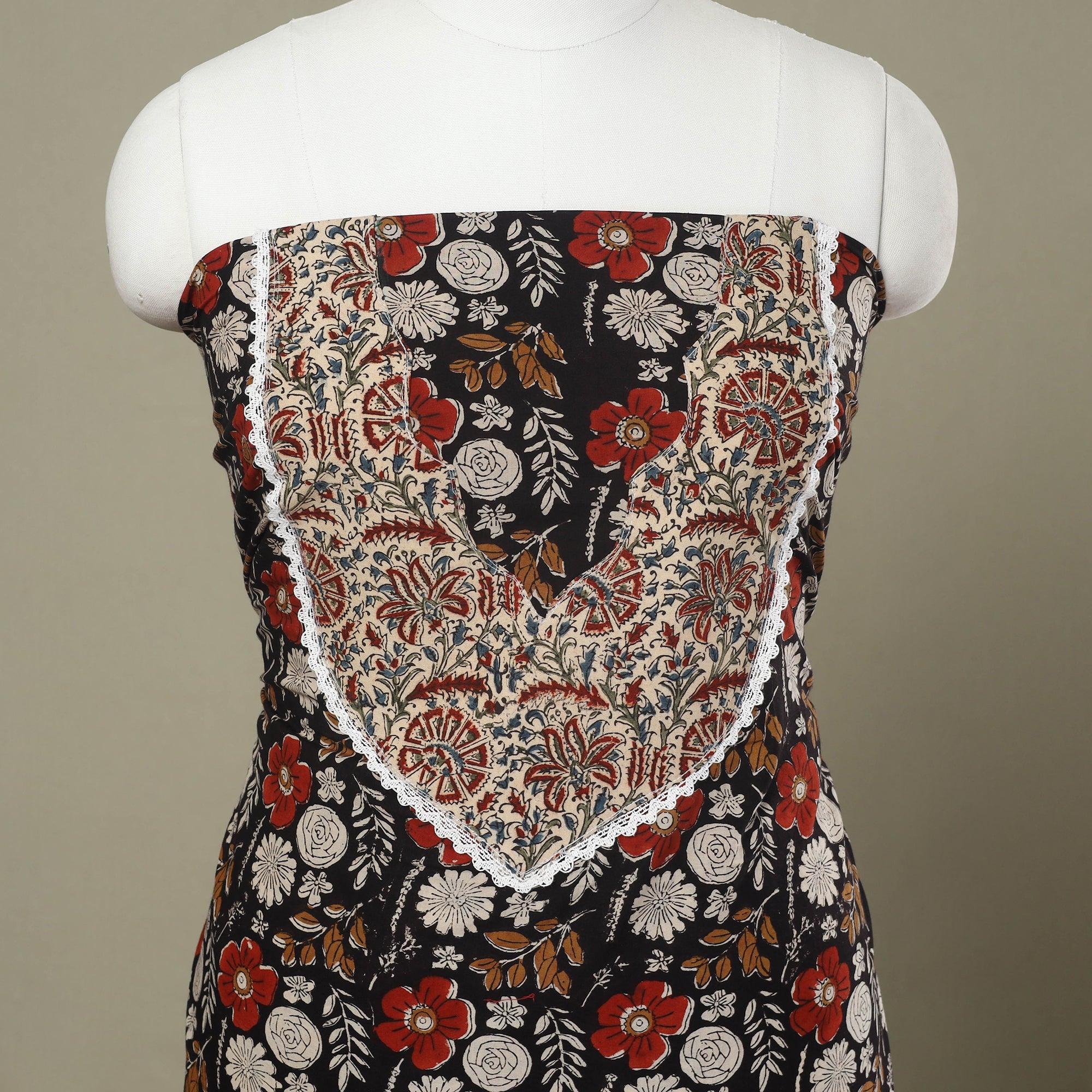 This black bagru print patchwork cotton kurta material is crafted using the traditional block printing method. The fabric features vibrant, intricate patterns that reflect the region's artistic legacy. Soft, breathable cotton ensures comfort while adding a cultural touch to your wardrobe. It’s perfect for creating custom kurtas.