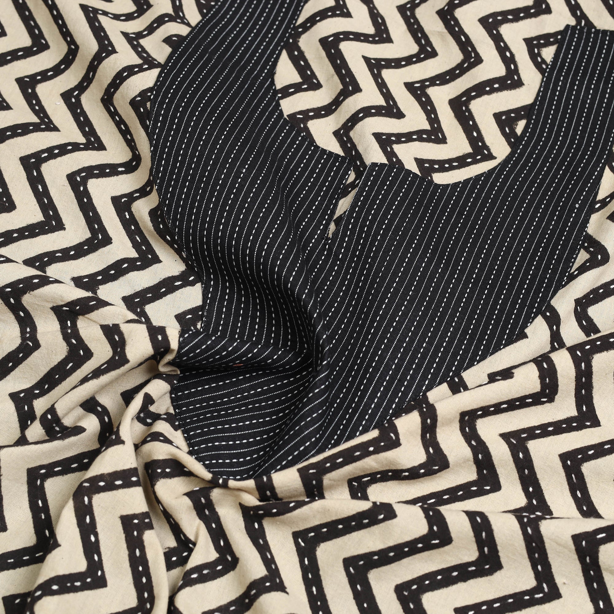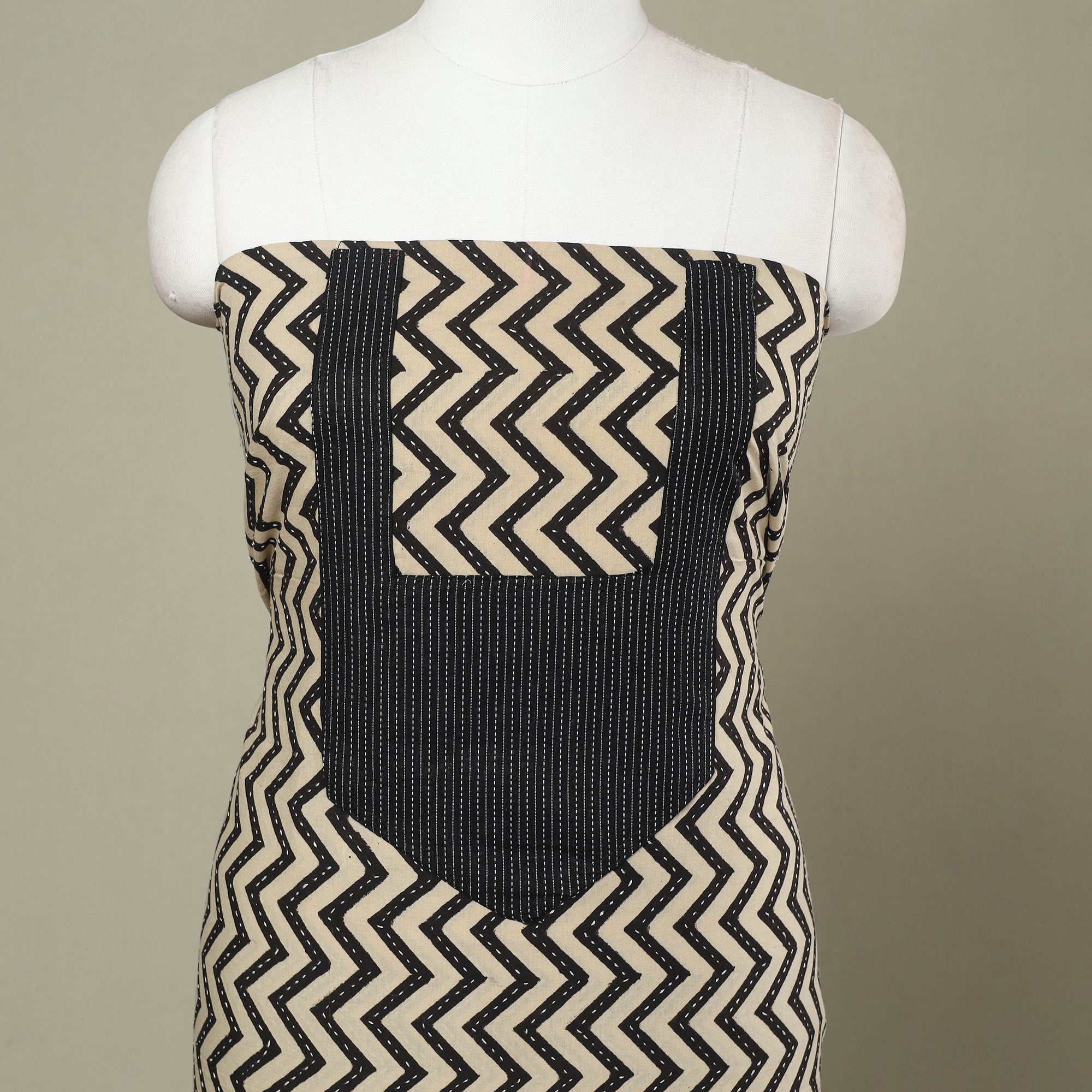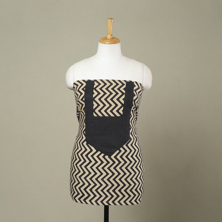 Celebrate your roots in style with this stunning beige bagru patchwork cotton fabric. Designed using age old block printing techniques, it brings a timeless charm to your ethnic wardrobe. Create custom kurtas that reflect heritage and individuality.