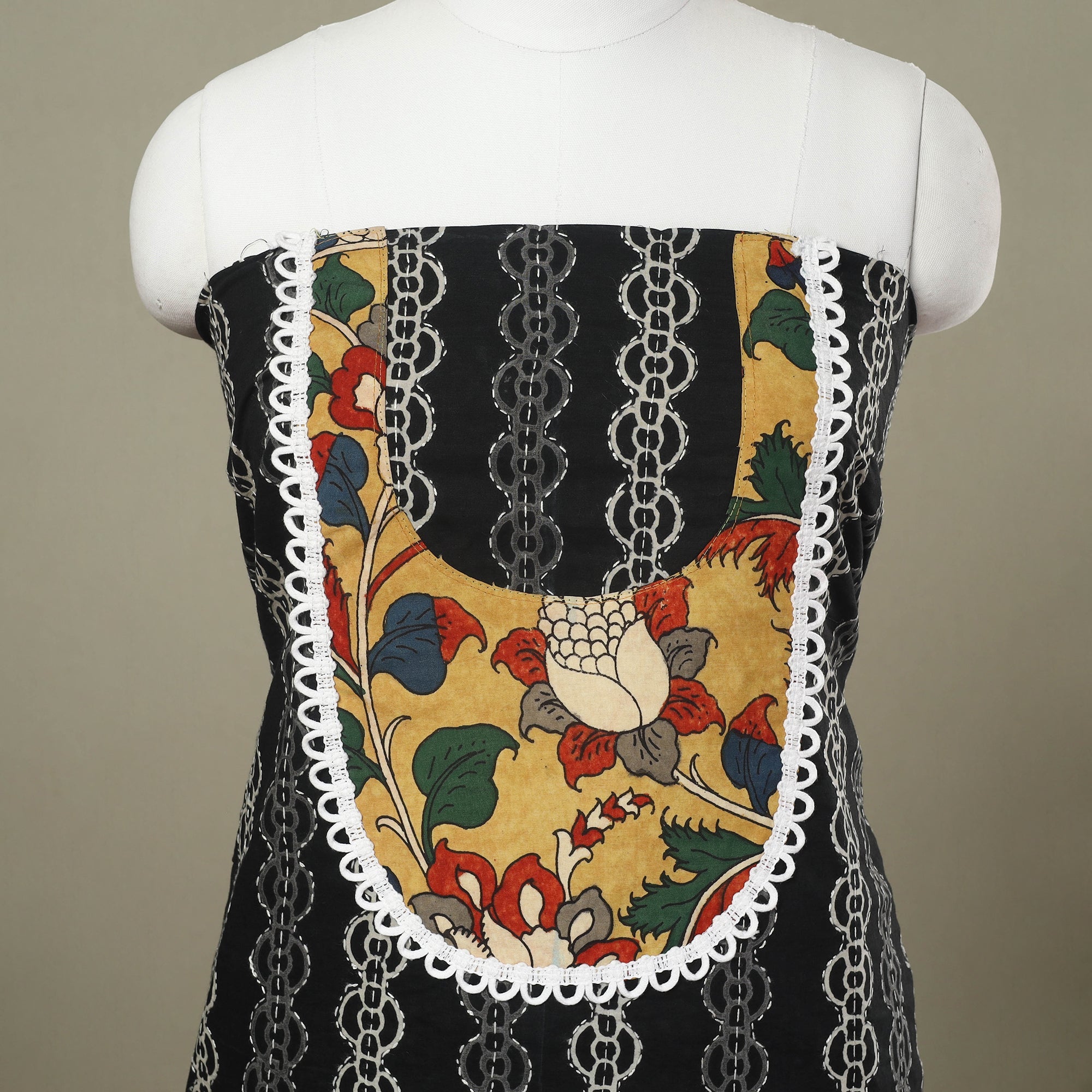 This black bagru print patchwork cotton tagai work kurta material is crafted using the traditional block printing method. The fabric features vibrant, intricate patterns that reflect the region's artistic legacy. Soft, breathable cotton ensures comfort while adding a cultural touch to your wardrobe. It’s perfect for creating custom kurtas.