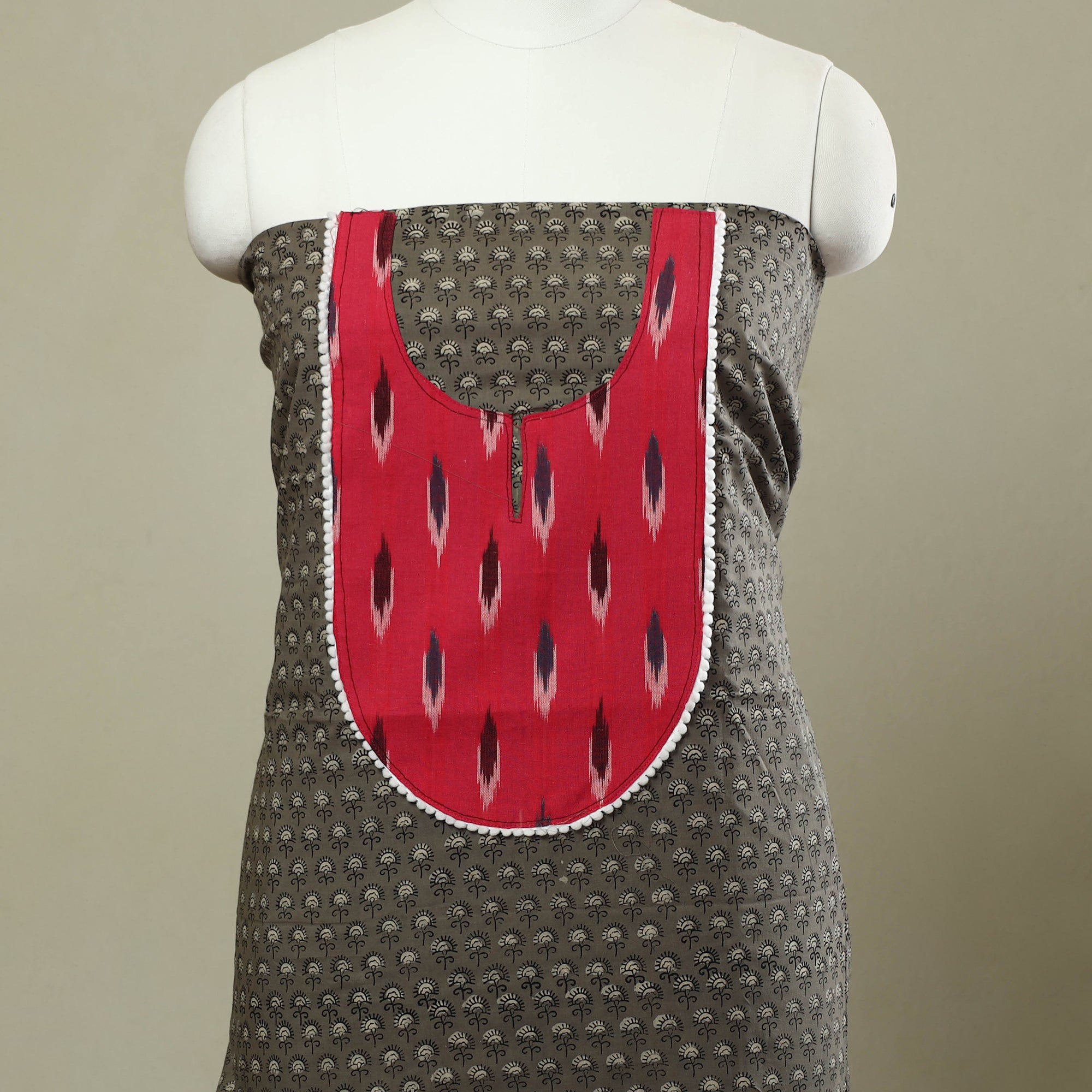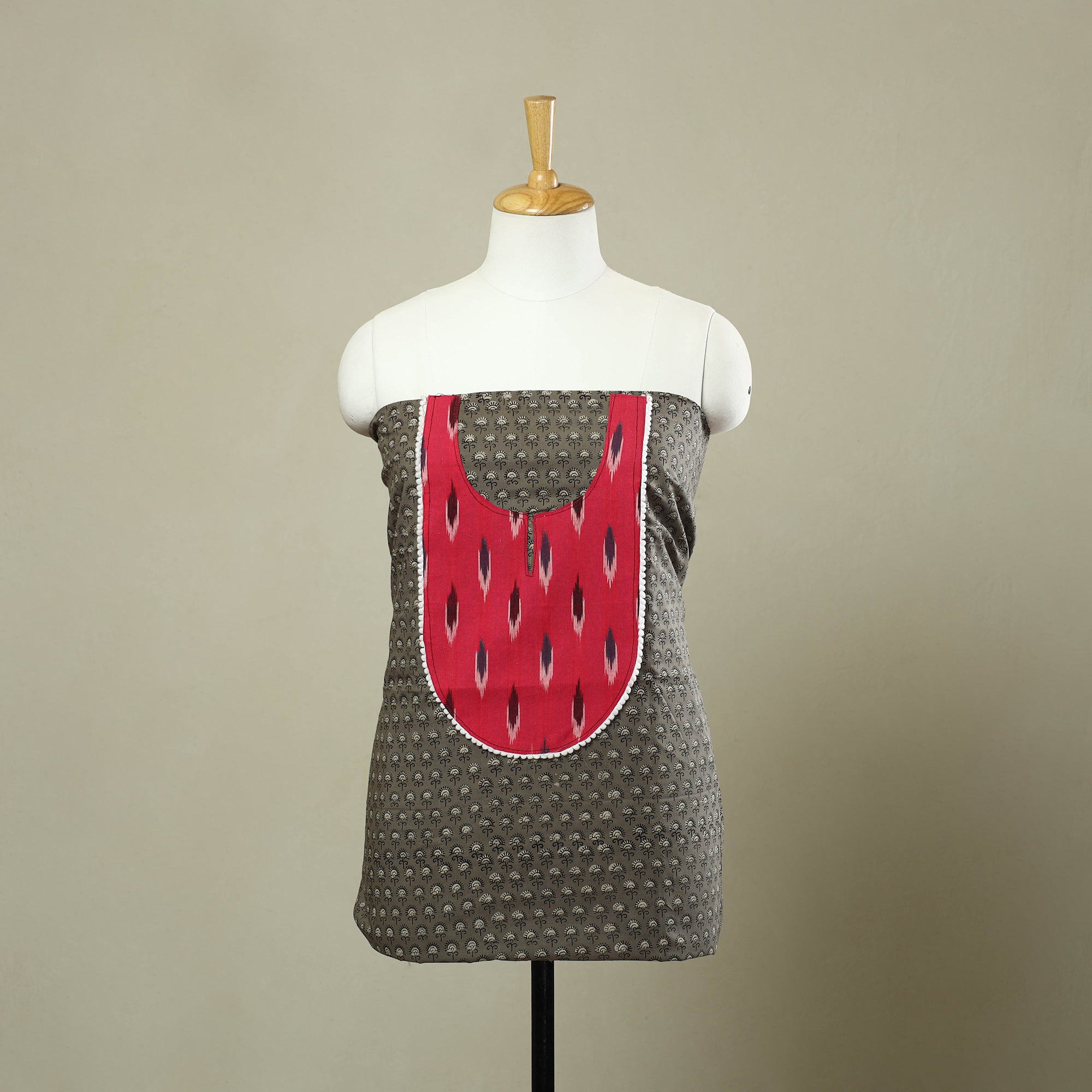 Add a cultural flair to your wardrobe with this grey bagru block print cotton kurta fabric. The patchwork design and rich detailing bring alive age-old artistry. Perfect for making kurtas that are as stylish as they are rooted in heritage, this fabric ensures comfort, vibrancy, and timeless appeal.