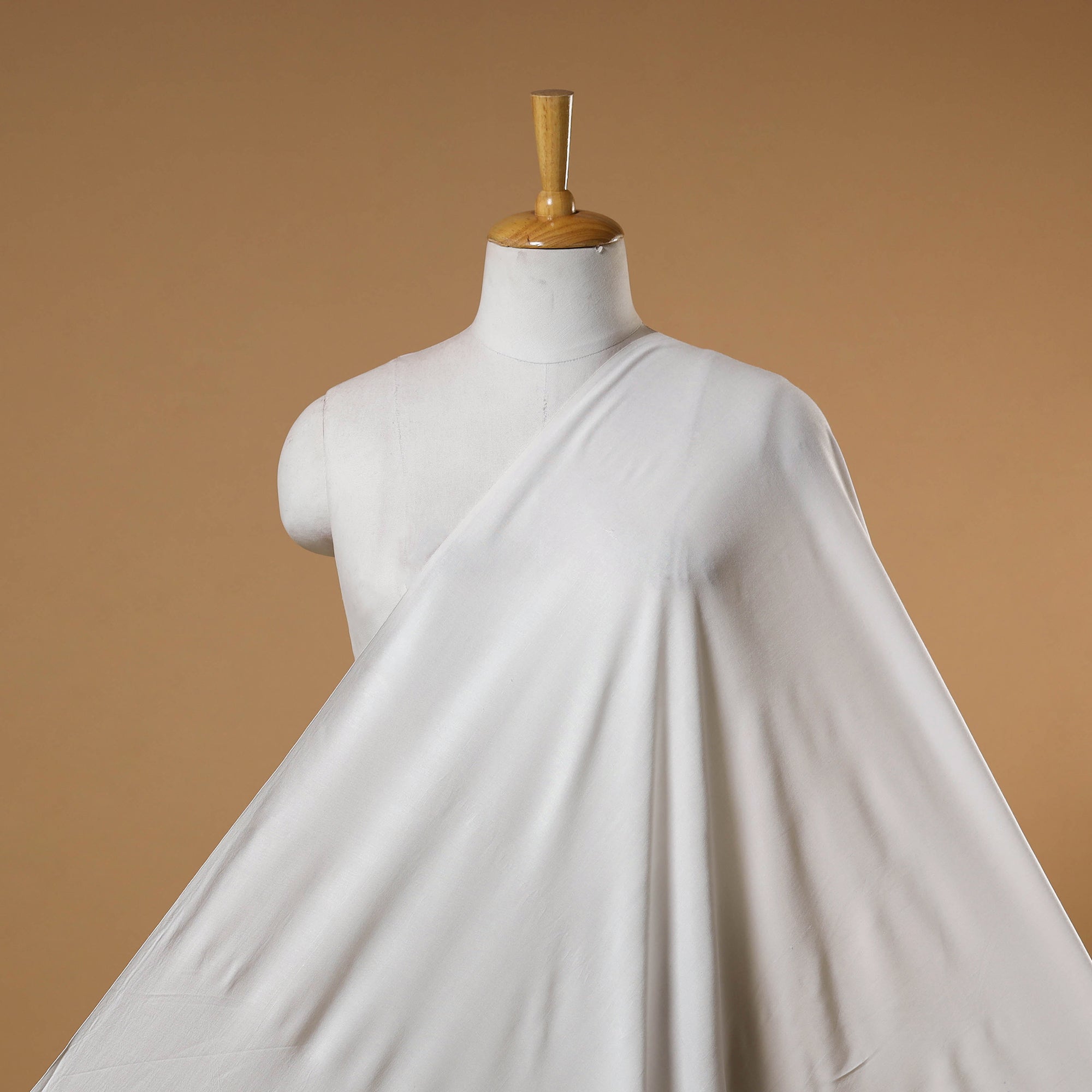 This white bamboo silk natural dyed pure handloom plain fabric is known for its soft texture and elegant look. Made from fine bamboo silk yarns, it has a smooth finish and gentle sheen that add a touch of sophistication. Lightweight, breathable, and comfortable to wear, it is naturally dyed and handwoven perfect for creating stylish dresses, kurtas, and home decor items.