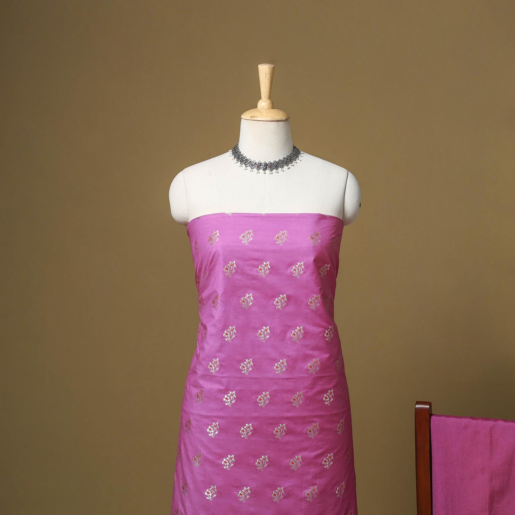 Pink banarasi art silk zari work meena buti 3pc unstitched dress material blends elegance with the rich weaving heritage of Banaras. Known for its detailed zari and meena motifs, the fabric beautifully reflects traditional artistry. Soft in feel yet regal in appearance, it comes with fabric for the kurta, bottom and dupatta. Perfect for weddings, festivals and special occasions, it helps create a refined and graceful ethnic look.