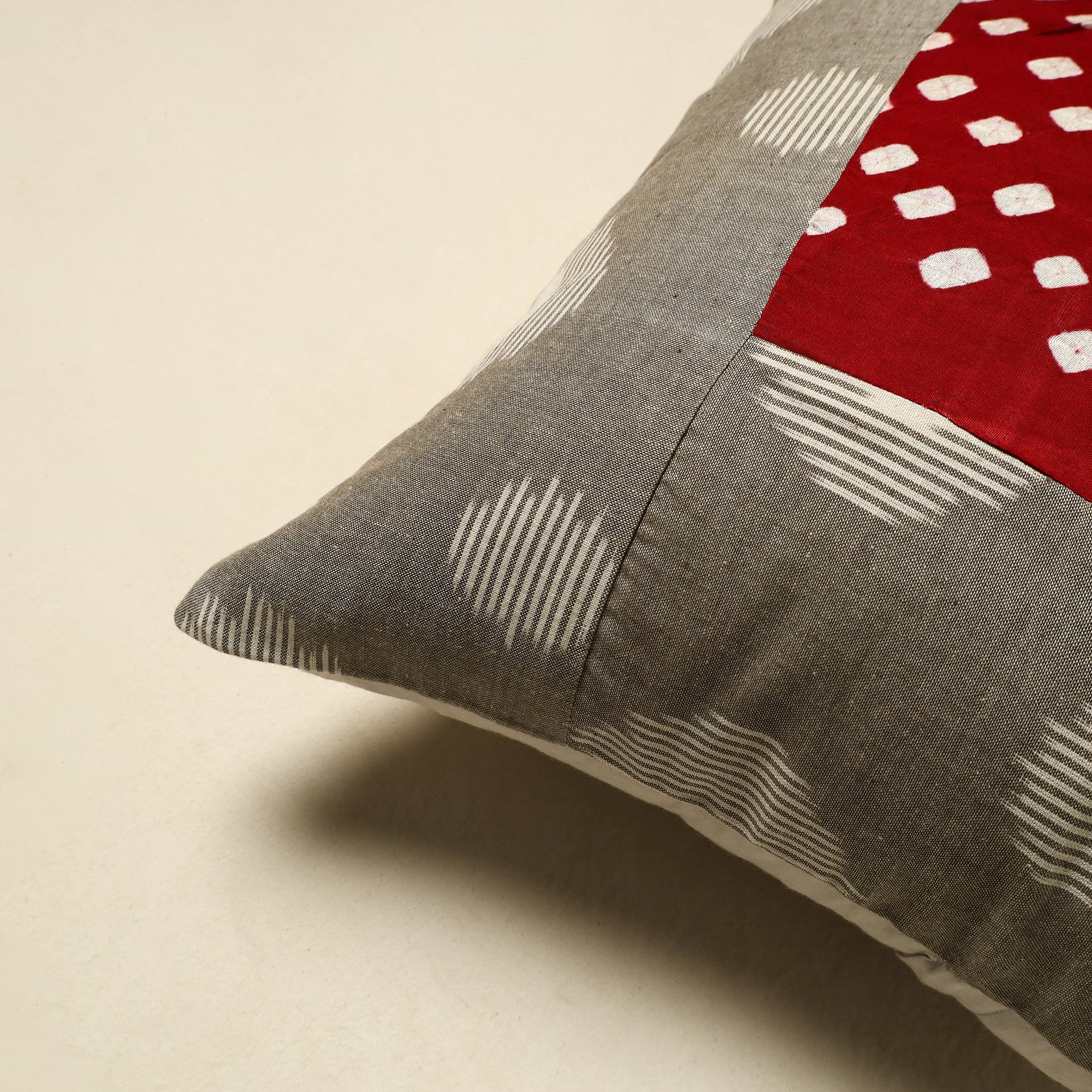 Elevate your space with this brown Ikat cushion cover made from soft cotton and detailed with bandhani modal silk patchwork. Expertly created by artisans, its vibrant patterns and rich textures bring a timeless touch to sofas, cozy corners, and bedrooms chairs, or as a thoughtful gift.