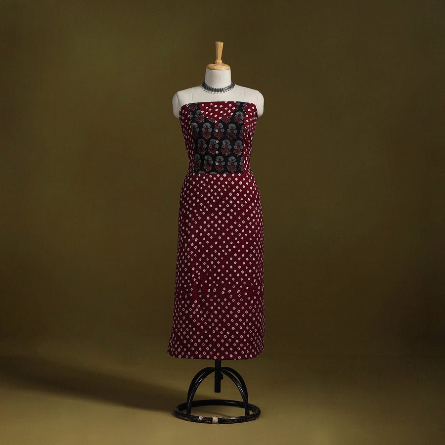 Purple - Bandhani Patchwork Cotton Unstitched Kurta Material (3m) 06