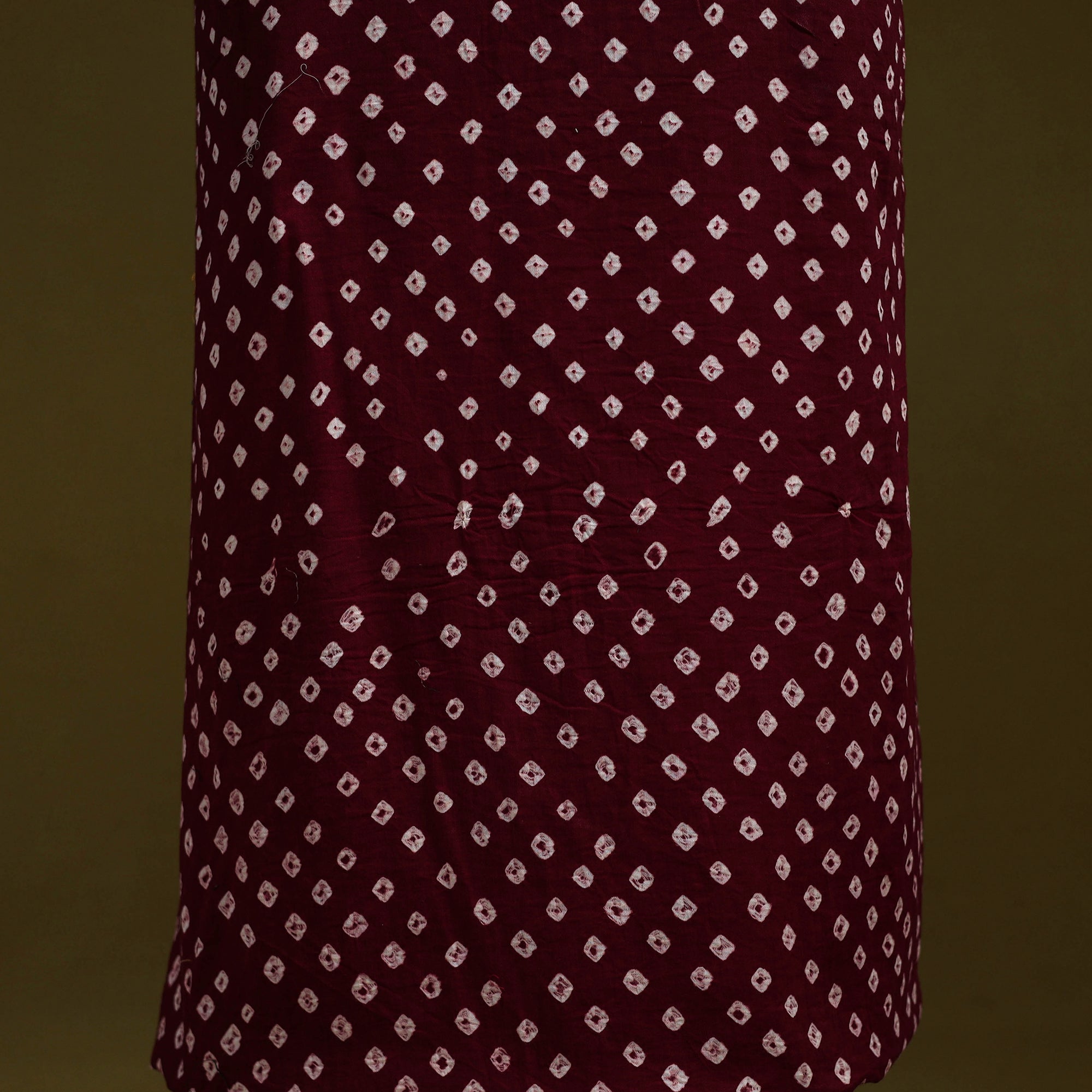 Purple bandhani cotton unstitched kurta material from Kutch. Made using traditional tie-dye technique, to create bandhej patterns. It features patchwork detailing, which adds a handcrafted touch. Ideal for stitching kurtas, fusion tops or tunics.
