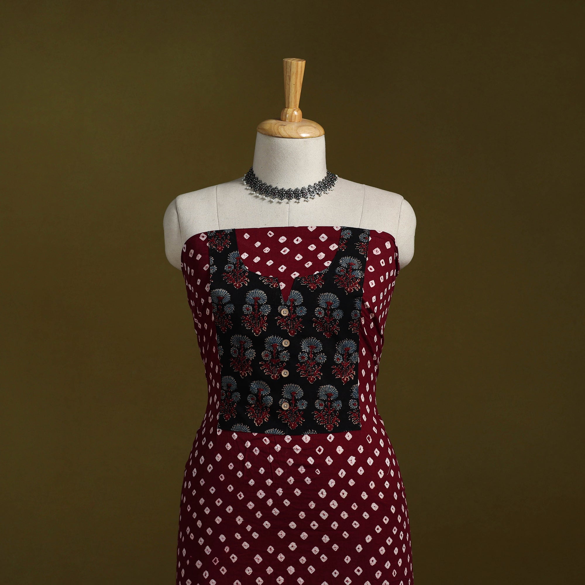 • Bandhani patchwork cotton unstitched kurta material (3m) 06