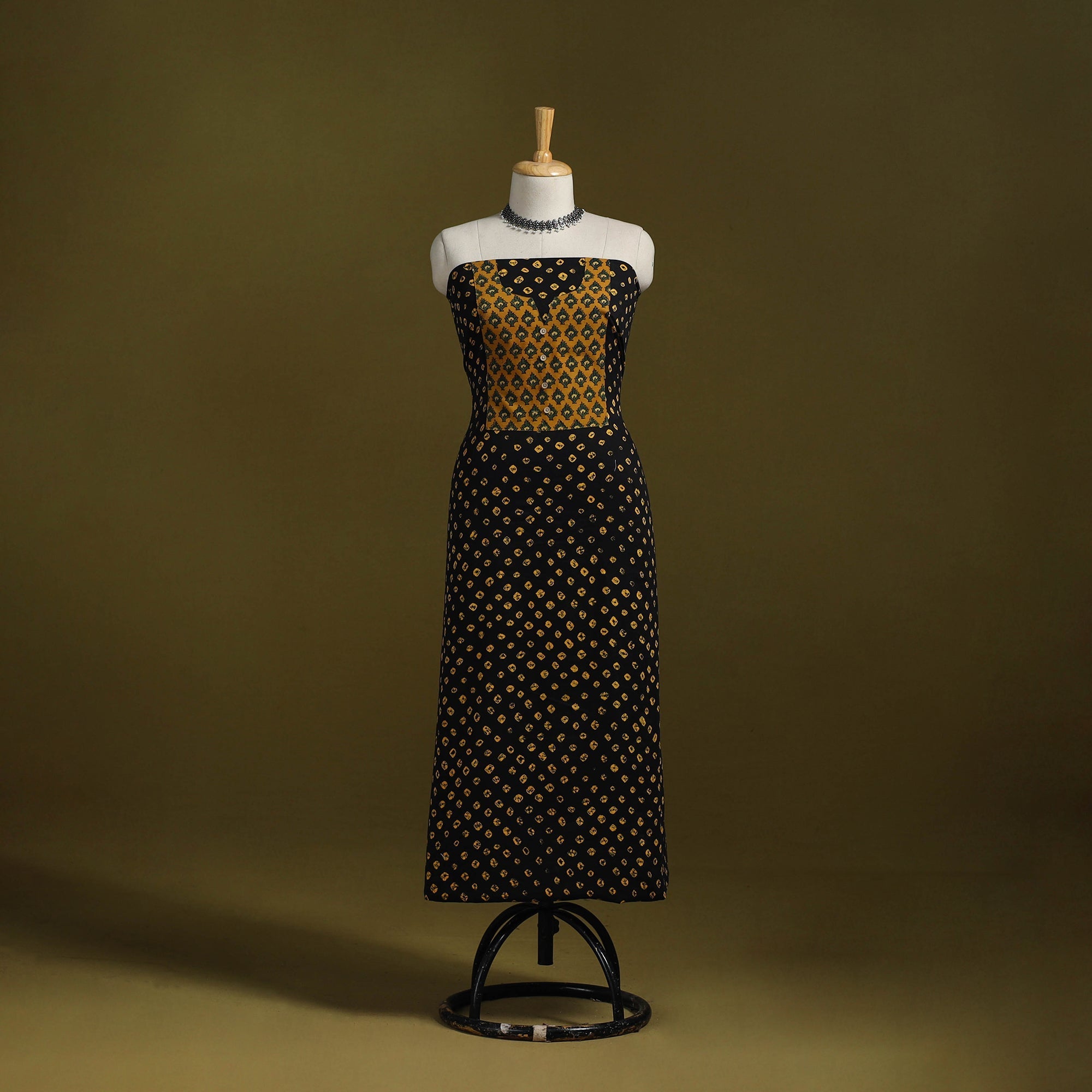 Black - Bandhani Patchwork Cotton Unstitched Kurta Material (3m) 11