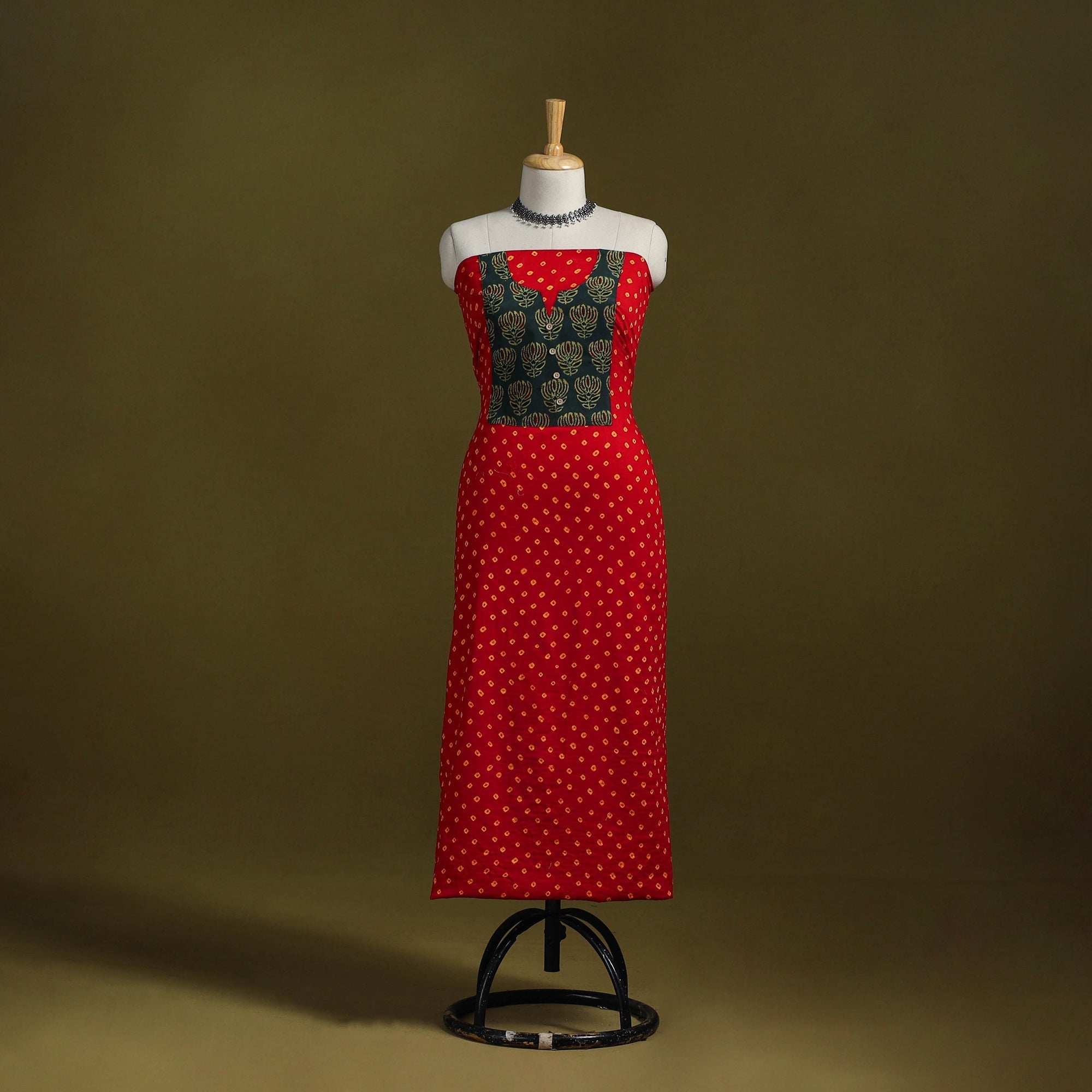 Red - Bandhani Patchwork Cotton Unstitched Kurta Material (3m) 13