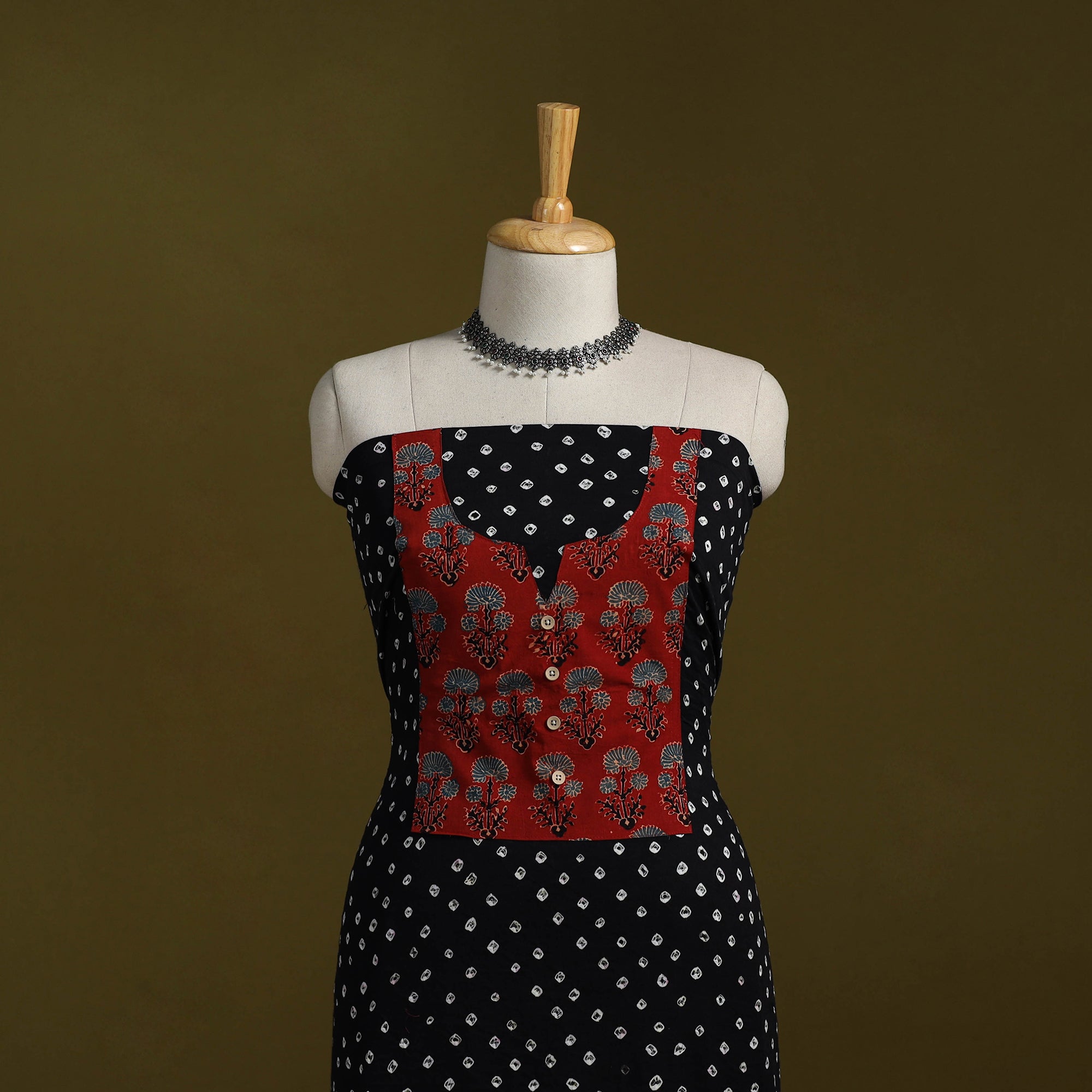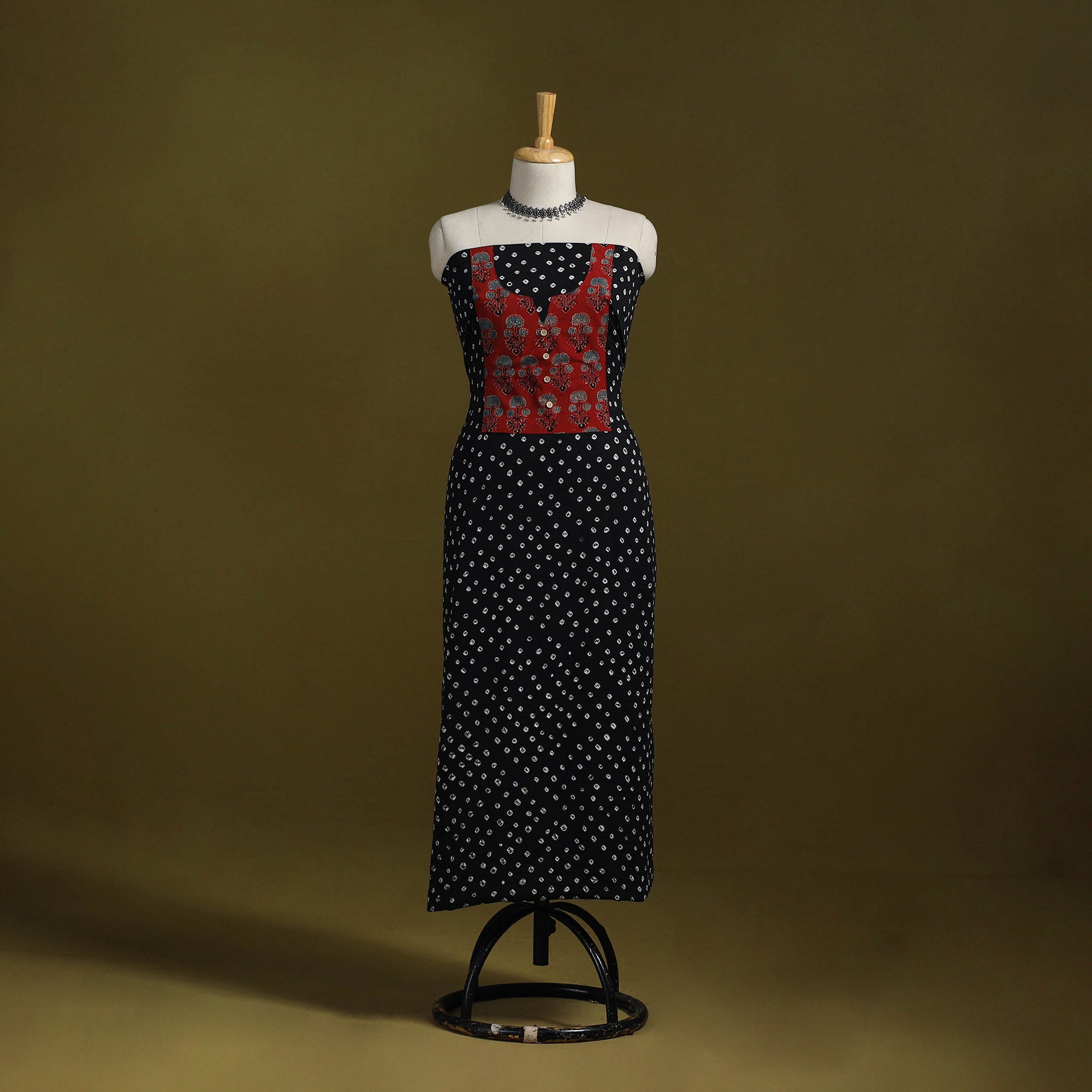 Black - Bandhani Patchwork Cotton Unstitched Kurta Material (3m) 14