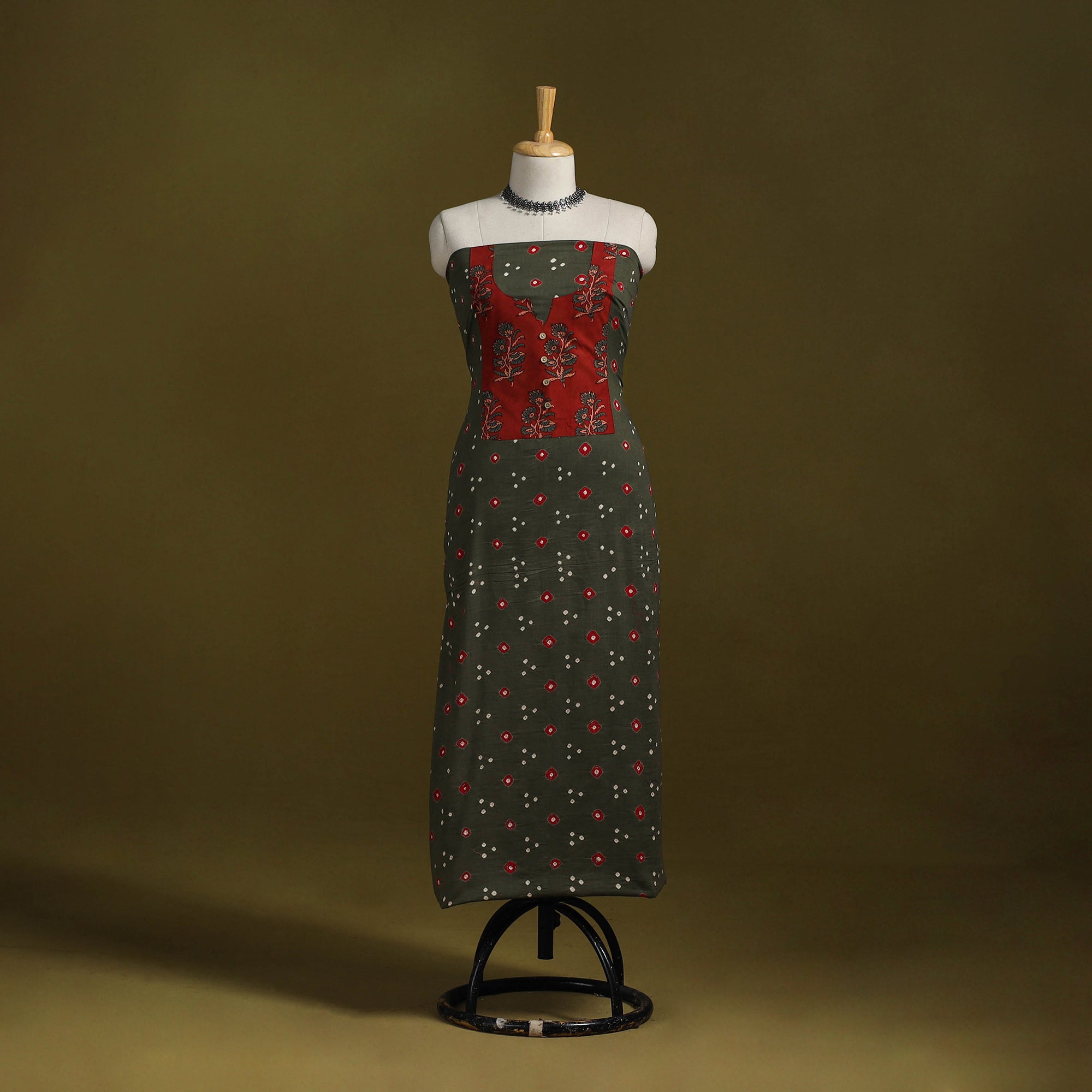 Grey - Bandhani Patchwork Cotton Unstitched Kurta Material (3m) 16