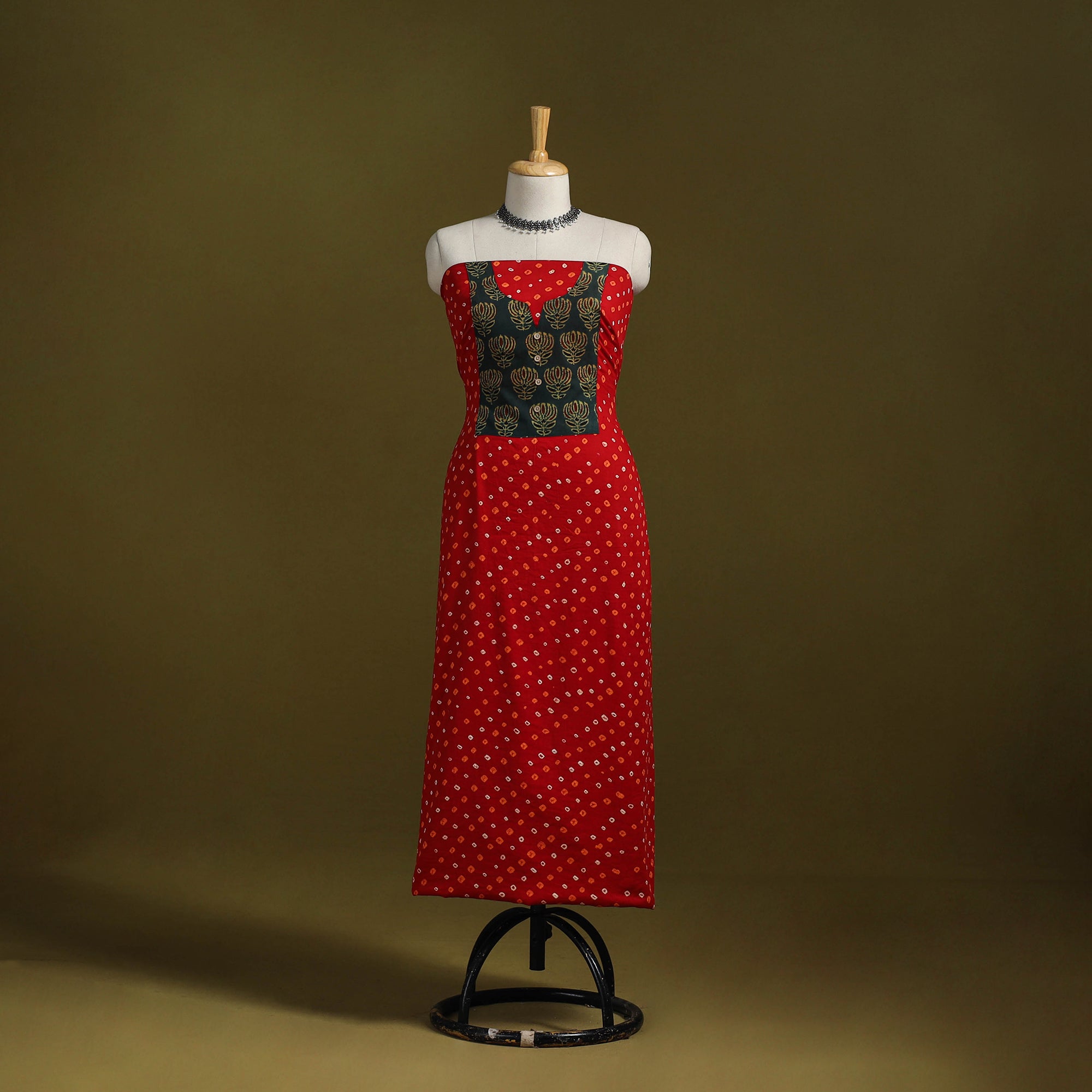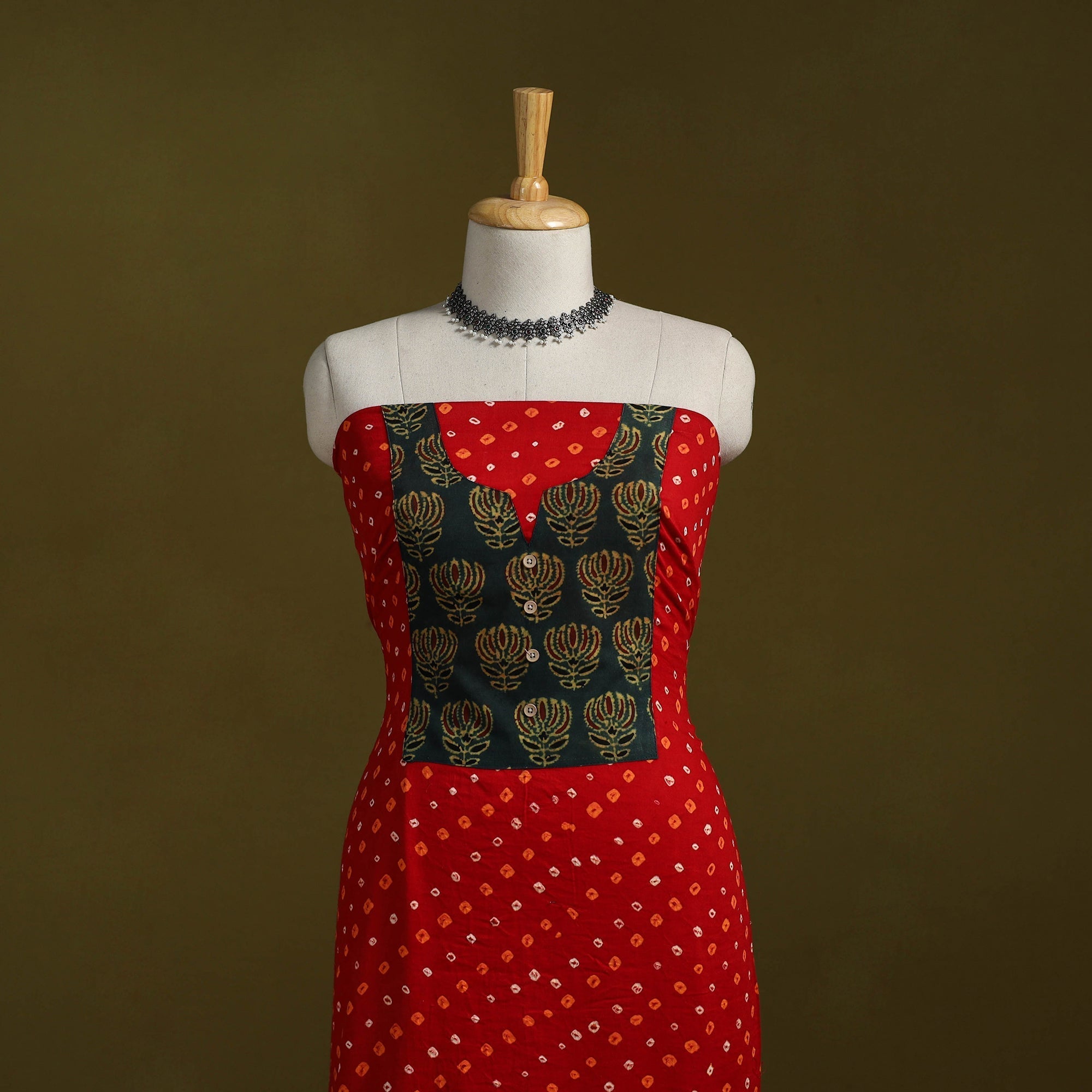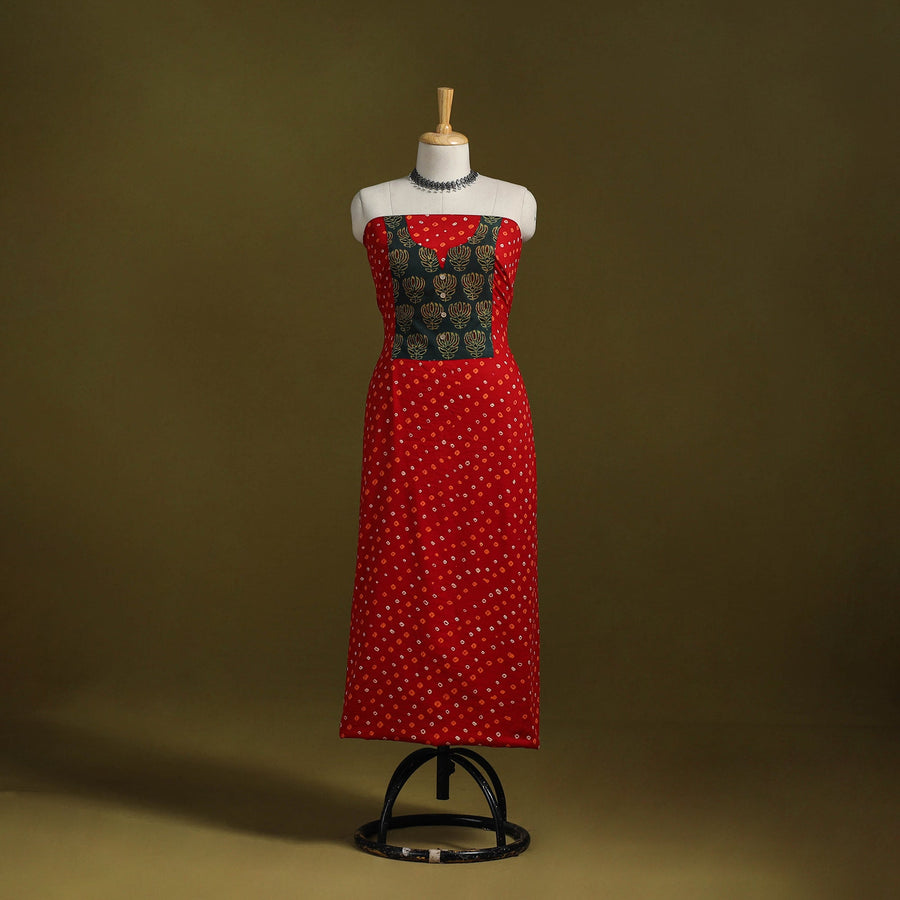 Red - Bandhani Patchwork Cotton Unstitched Kurta Material (3m) 17