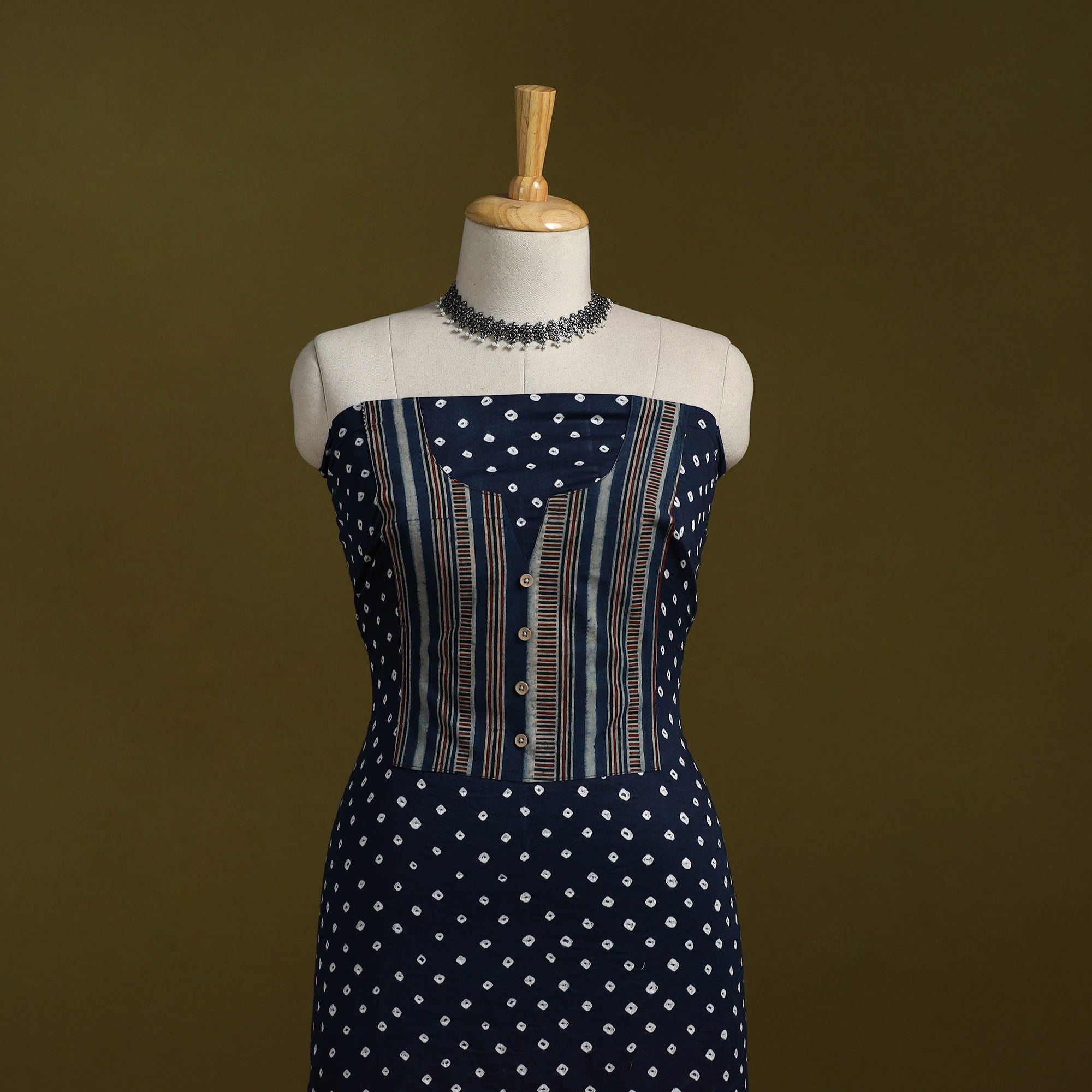 • Bandhani patchwork cotton unstitched kurta material (3m) 22