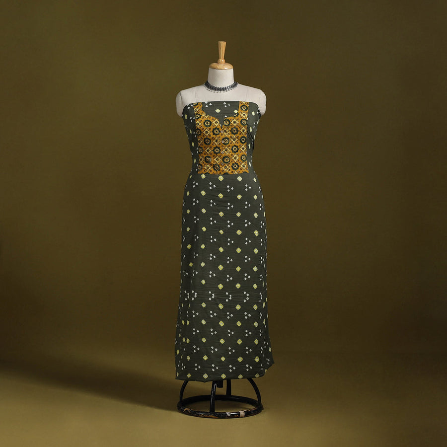 Grey - Bandhani Patchwork Cotton Unstitched Kurta Material (3m) 30
