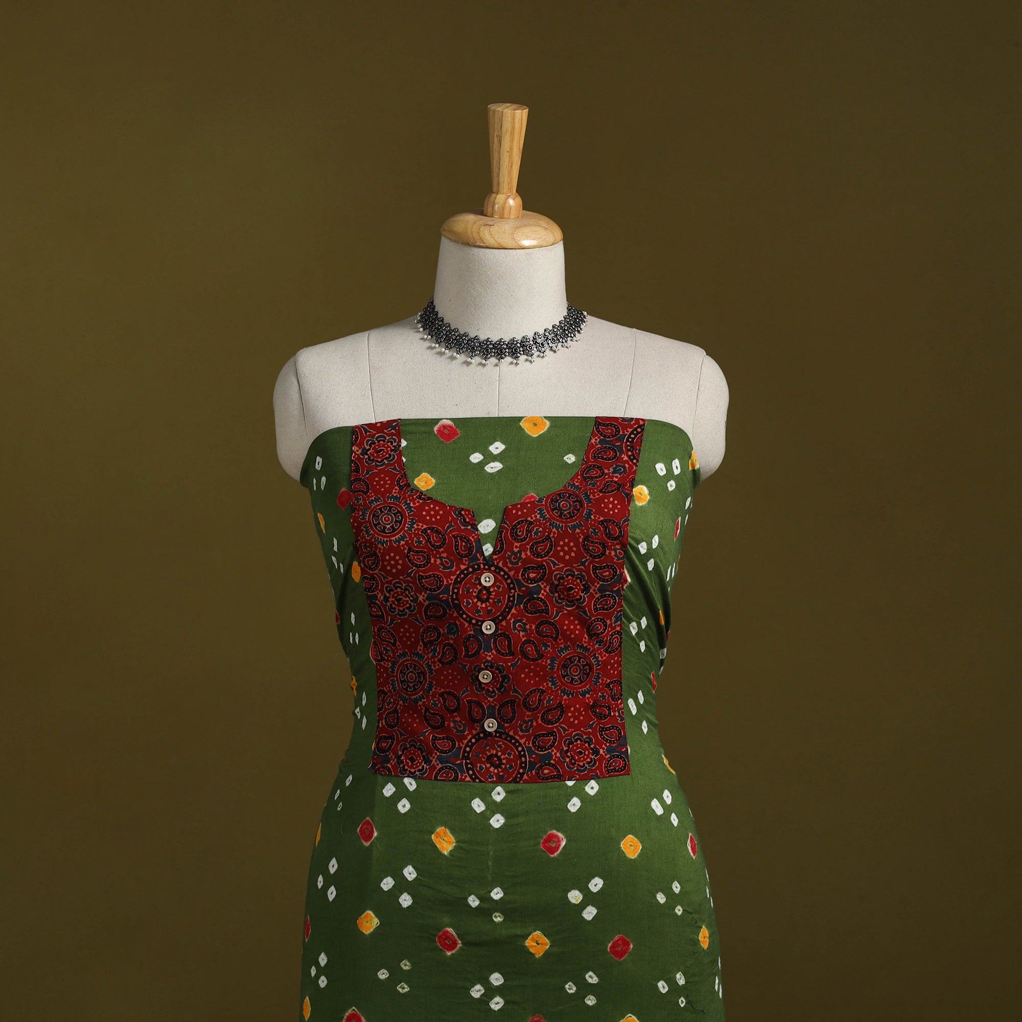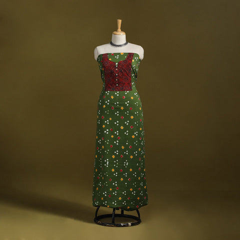 Green - Bandhani Patchwork Cotton Unstitched Kurta Material (3m) 37