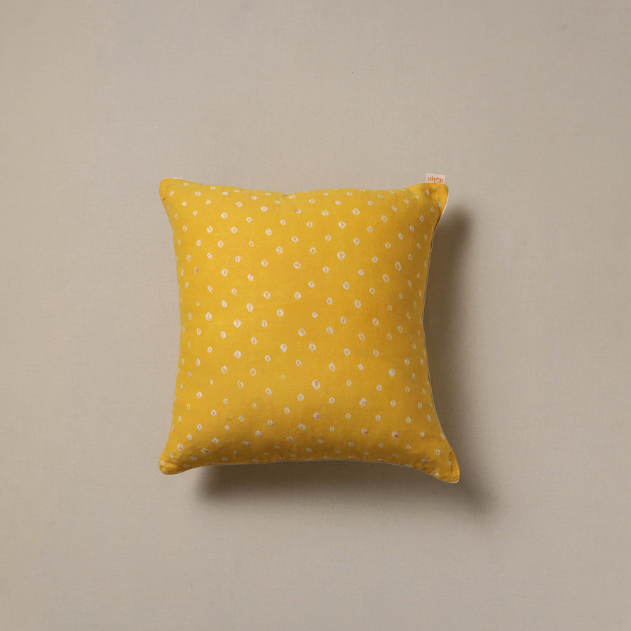 | Material | Yellow bandhani tie-dye cushion cover, crafted from cotton and traditional Indian handmade textiles. It blends artistry with comfort, making it perfect for your sofa, bed or lounge area. |