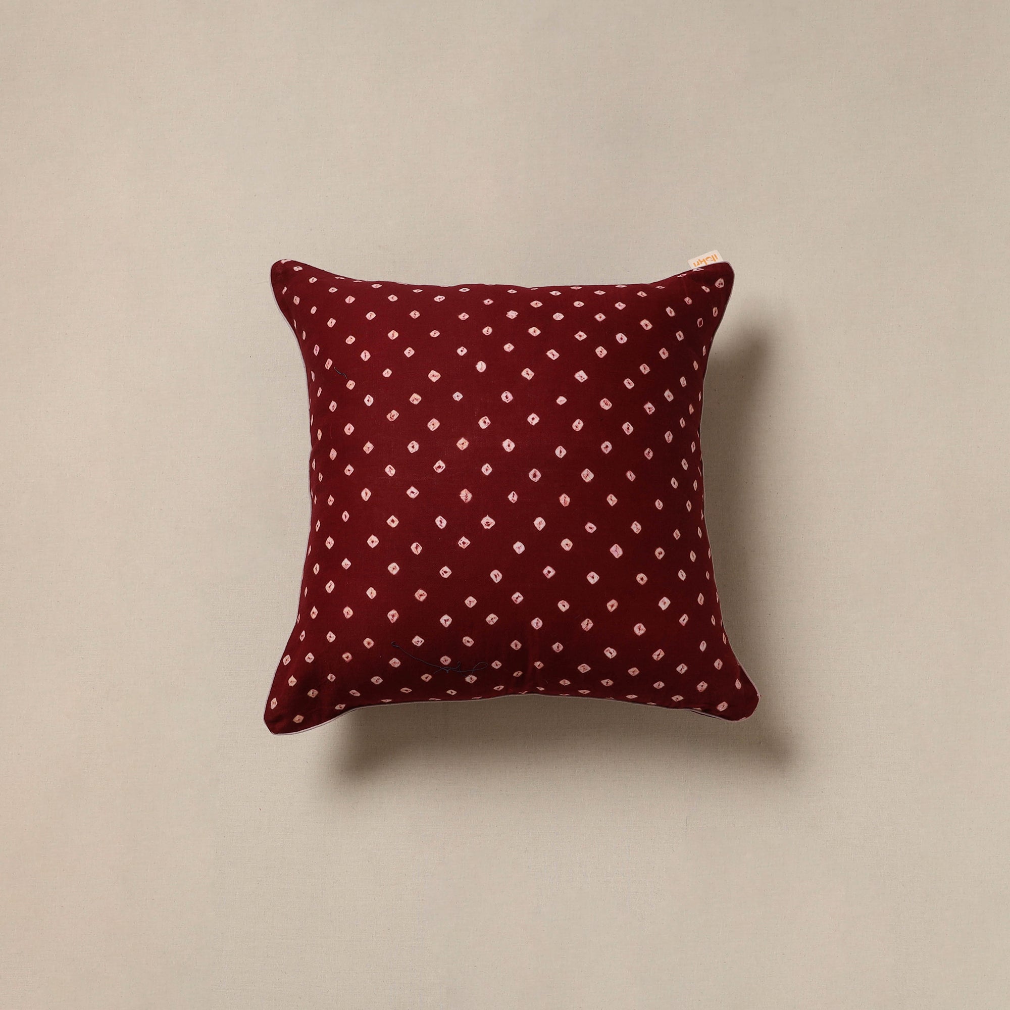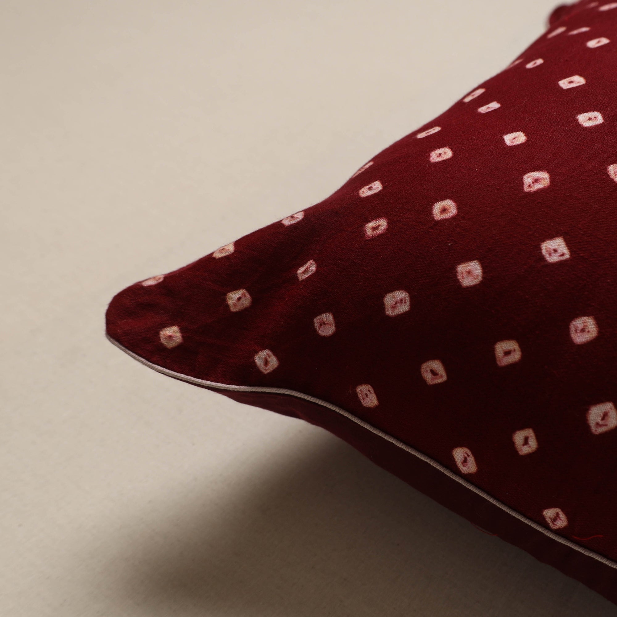 | Material | Maroon bandhani tie-dye cushion cover, crafted from cotton and traditional Indian handmade textiles. It blends artistry with comfort, making it perfect for your sofa, bed or lounge area. |