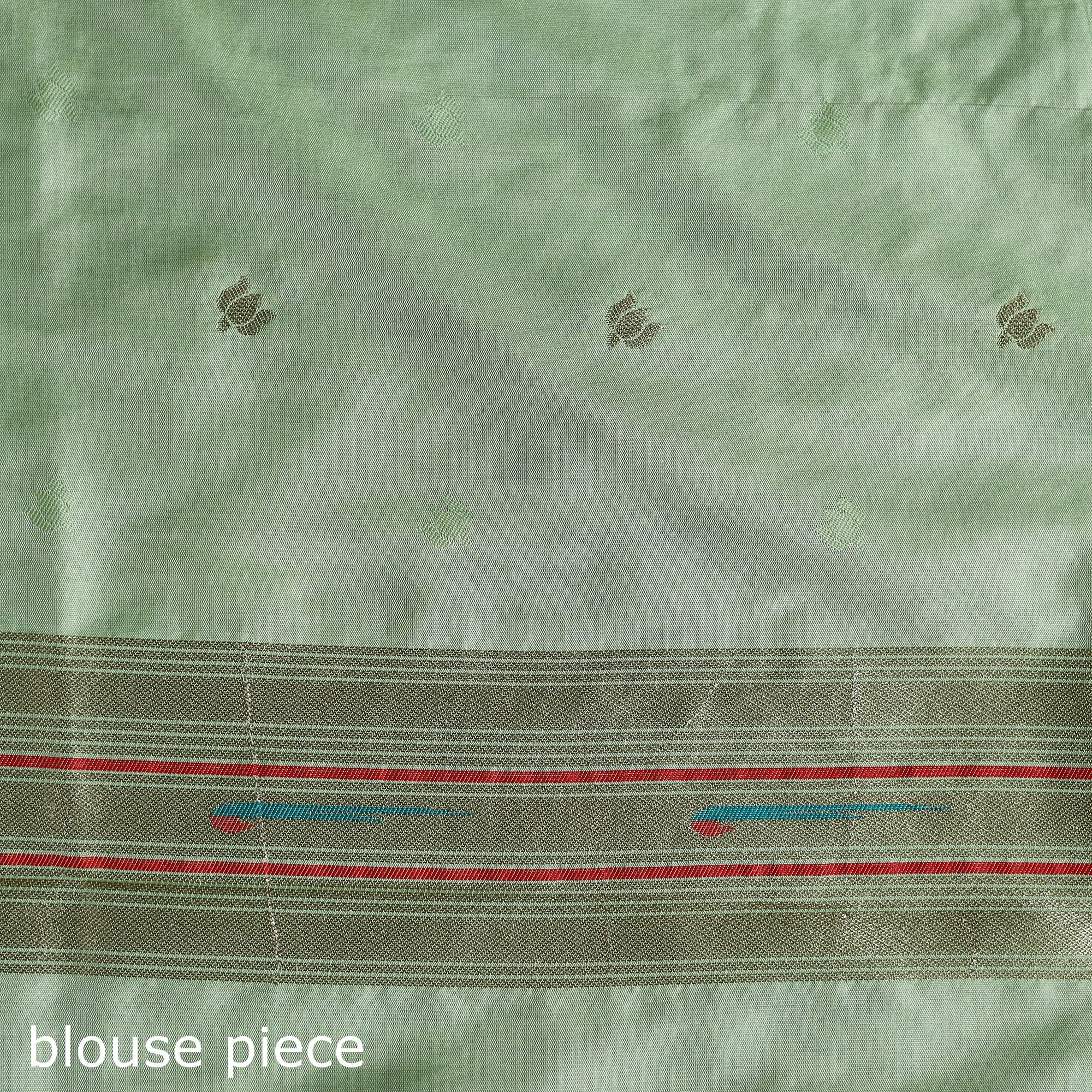 Green bangalore silk paithani saree features exquisite zari weaving in gold and silver threads, showcasing traditional motifs like peacocks and lotuses inspired by mythological tales. Its vibrant colors and intricate detailing reflect cultural richness and timeless elegance. Crafted on a bangalore silk base, it exudes regal charm, making it a perfect choice for weddings, occasions and celebrations.