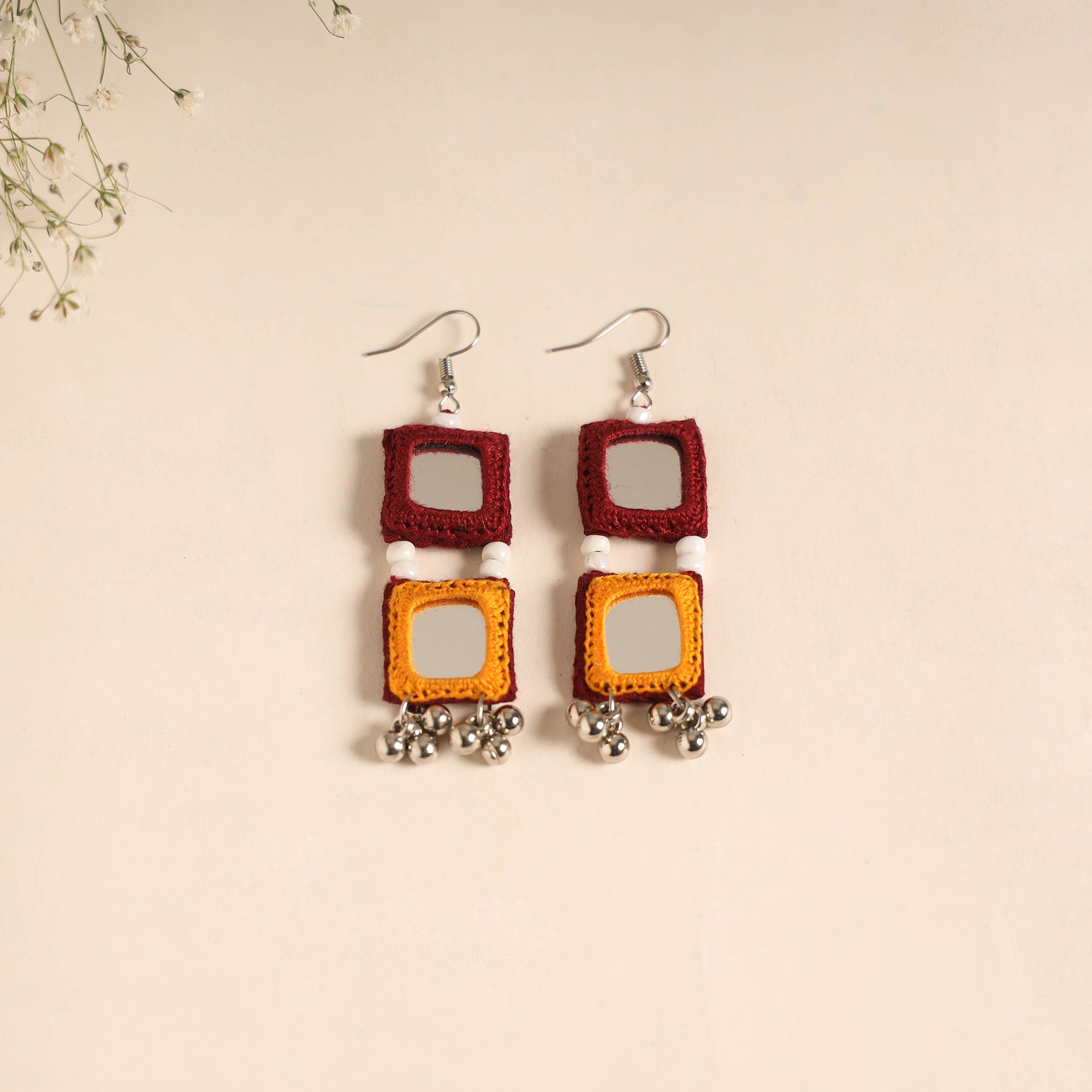 Banjara earrings are handcrafted by artisans using the Lambada (Banjara) embroidery tradition of Maharashtra. Known for its vibrant threads, beads and mirror detailing, this embroidery reflects the rich cultural heritage of the Banjara community.