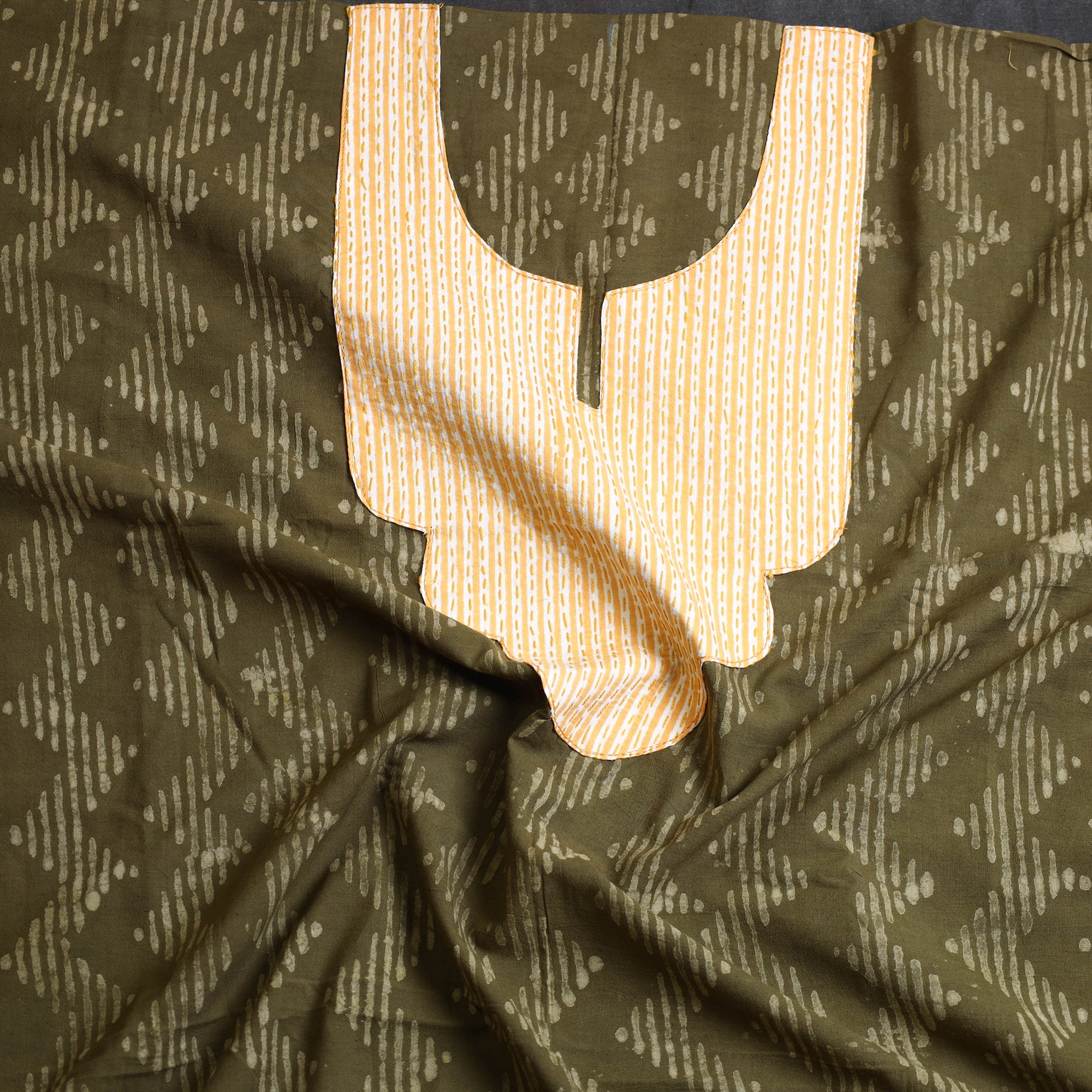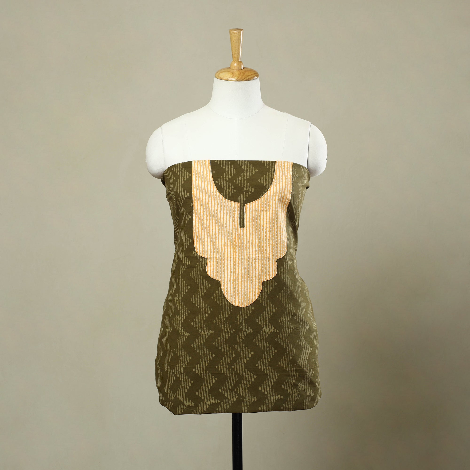 Elevate your wardrobe with this batik print green patchwork cotton kurta material. Created using traditional batik dyeing, it features stunning, vibrant patterns. This fabric is a graceful fusion of cultural richness and elegance, perfect for those who value comfort and distinctive style.