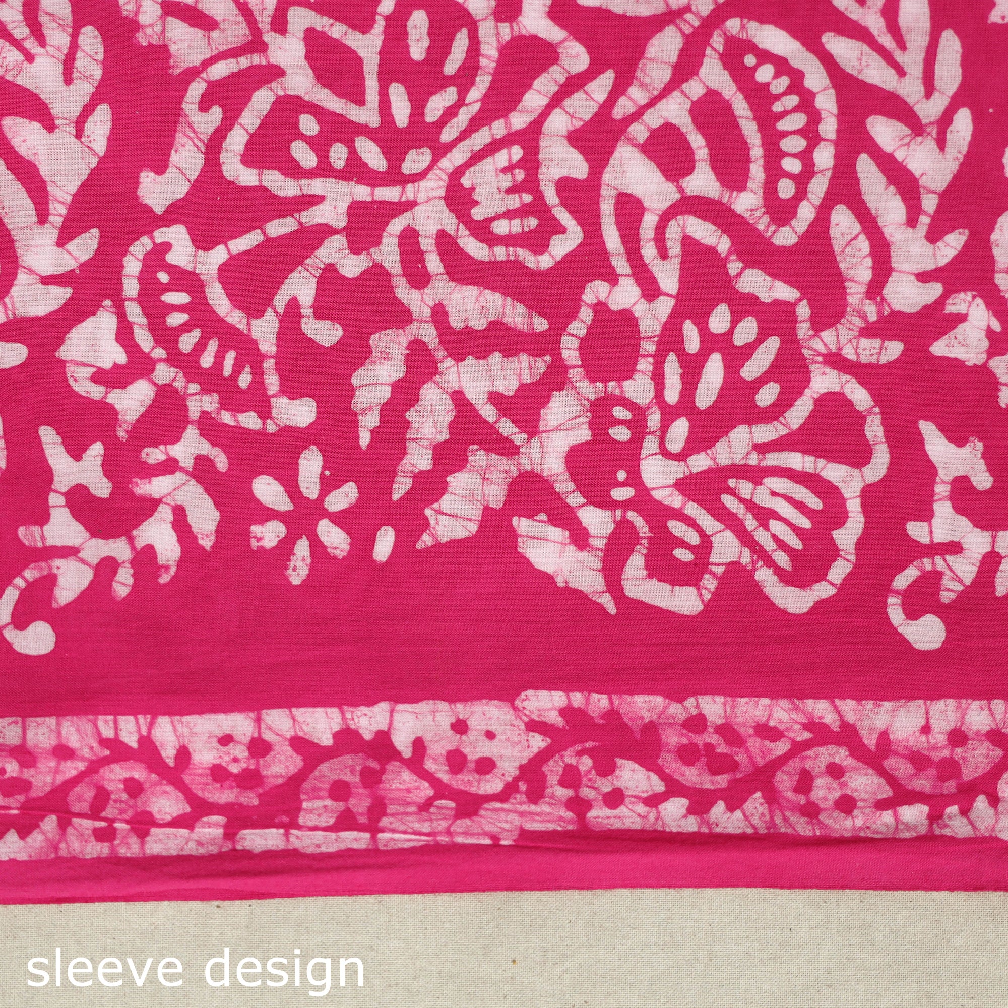 This pink hand batik print patchwork cotton kurta material features vibrant designs created using the traditional wax-resist dyeing technique. Soft and breathable, it's perfect for custom kurtas, offering both comfort and cultural style.