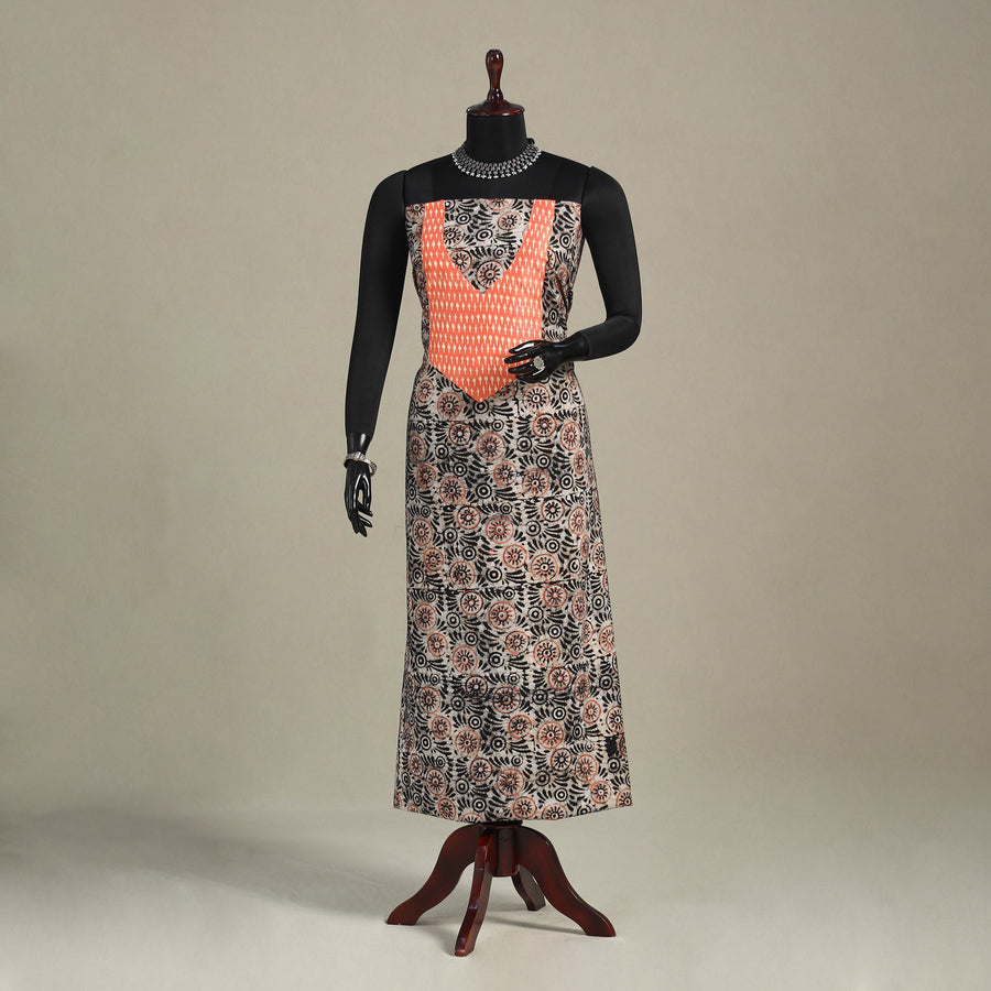 Brown - Batik Print Patchwork Cotton Unstitched Kurta Material (2.6M) 11