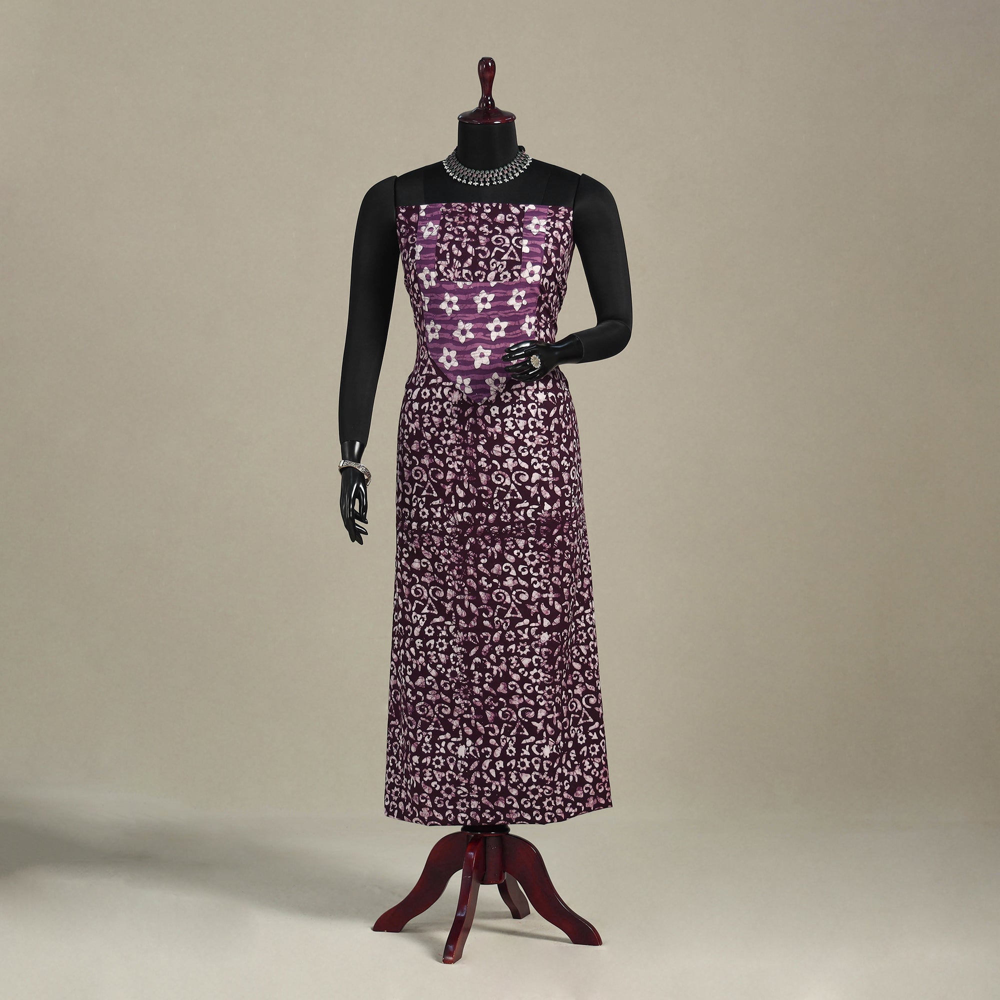 This purple hand batik print patchwork cotton kurta material features vibrant designs created using the traditional wax-resist dyeing technique. Soft and breathable, it's perfect for custom kurtas, offering both comfort and cultural style.