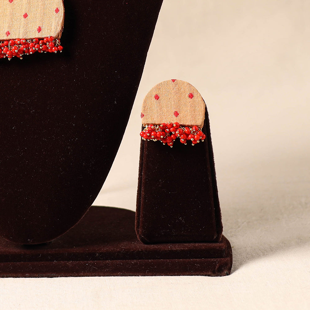 Add a touch of handmade charm with this beige necklace set, made from thread and featuring a fabric pendant adorned with beadwork. The set also includes matching earrings to complete your look. Crafted by skilled artisans, it’s lightweight and pairs effortlessly with traditional outfits. Perfect for festive occasions, cultural functions, or simply to add a unique flair to your everyday attire.