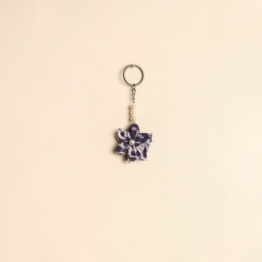 Handmade keychain crafted from cotton, featuring a charming fabart flower design with bead detailing. Lightweight and easy to carry, it adds a decorative touch to your keys, bags or pouches.
