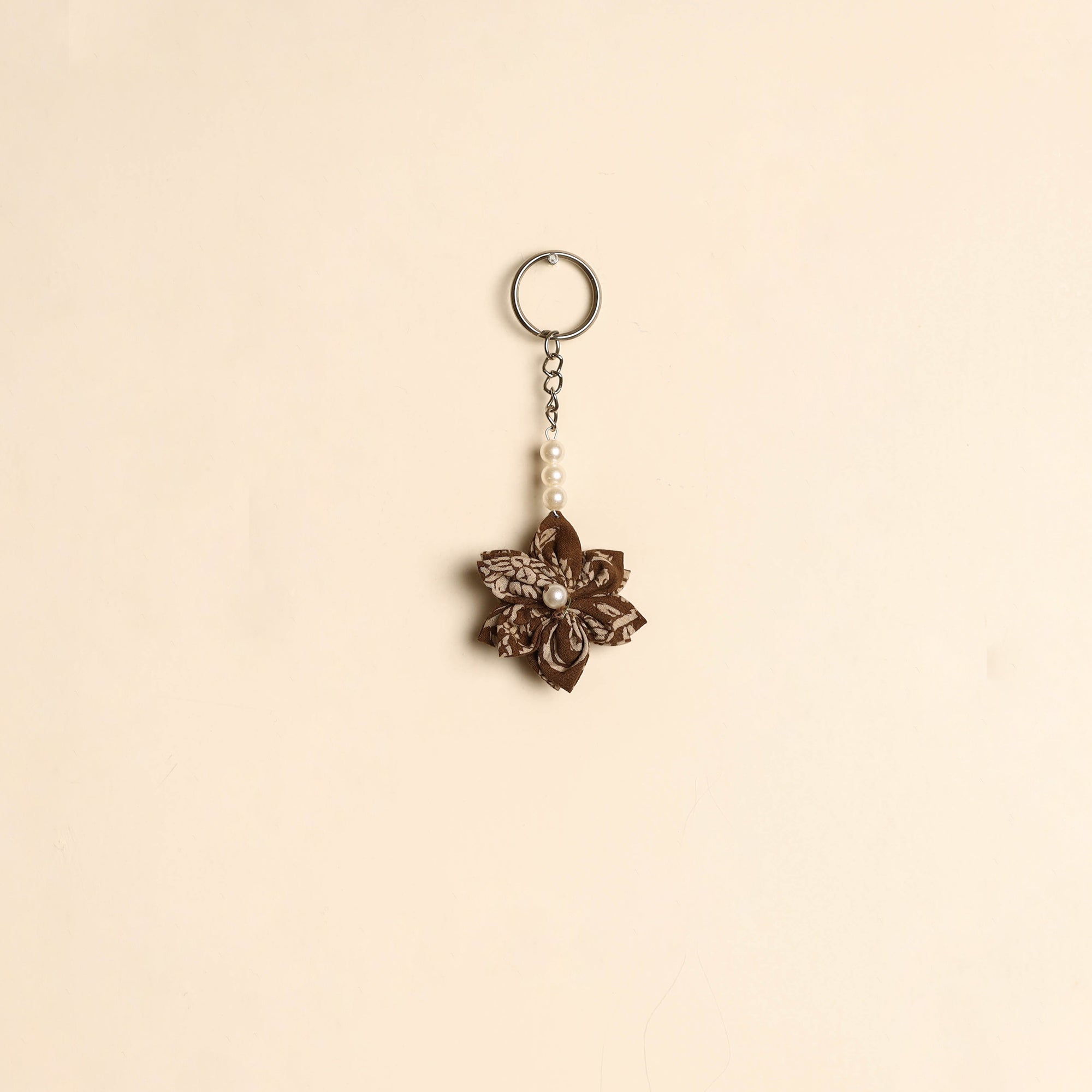Handmade keychain crafted from cotton, featuring a charming fabart flower design with bead detailing. Lightweight and easy to carry, it adds a decorative touch to your keys, bags or pouches.