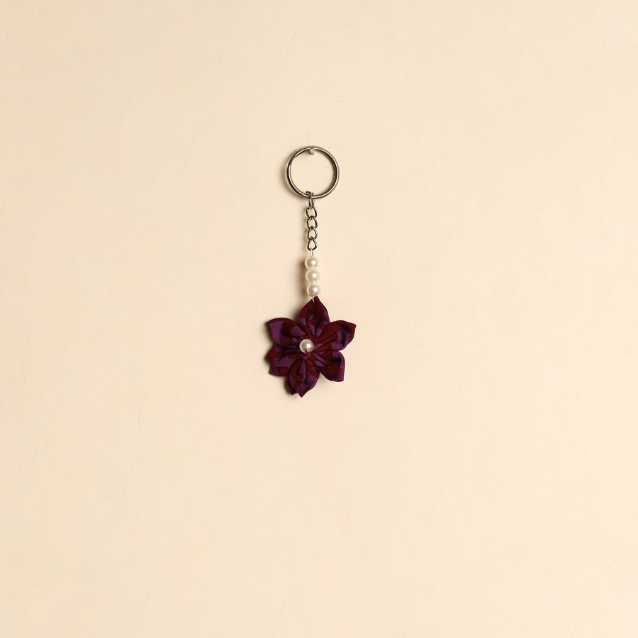 Handmade keychain crafted from cotton, featuring a charming fabart flower design with bead detailing. Lightweight and easy to carry, it adds a decorative touch to your keys, bags or pouches.