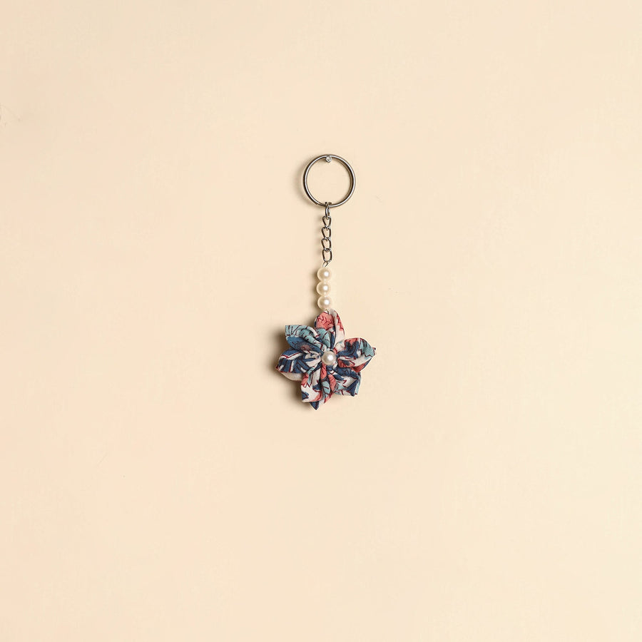 Handmade keychain crafted from cotton, featuring a charming fabart flower design with bead detailing. Lightweight and easy to carry, it adds a decorative touch to your keys, bags or pouches.