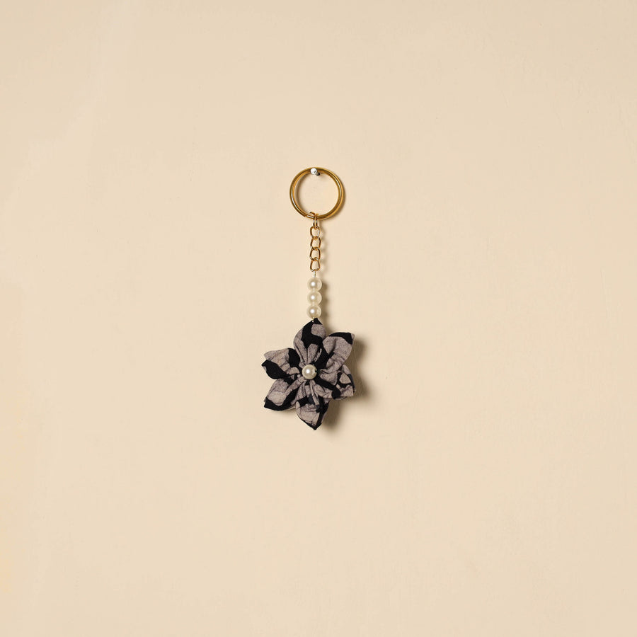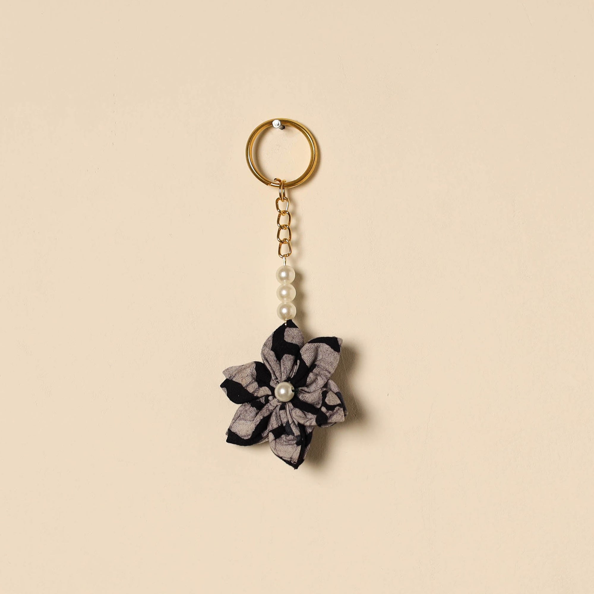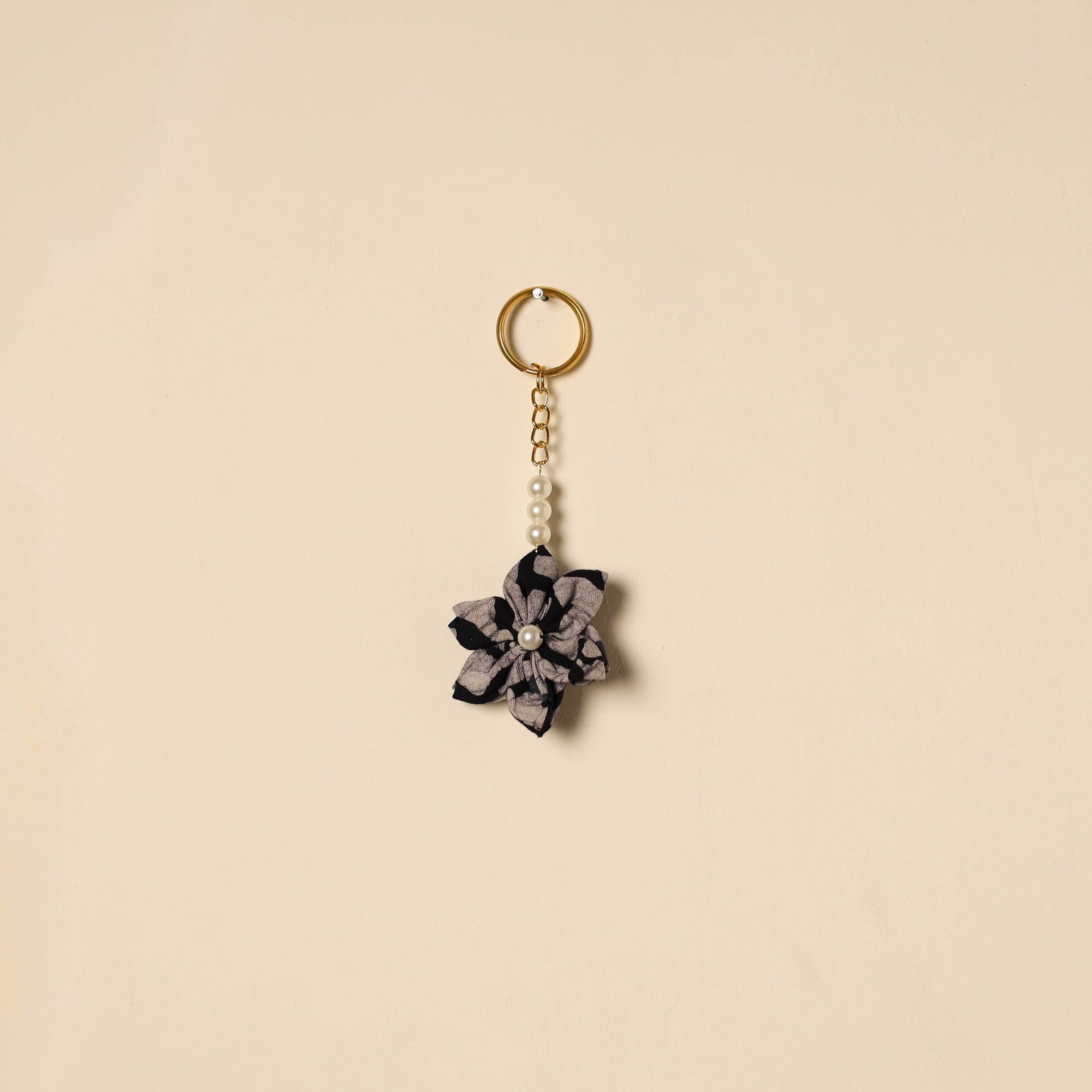 | Material | Black handmade keychain is crafted from leftover fabrics that were simply too pretty to waste. Sustainable and stylish, this keychain help reduce waste while adding a pop of personality to your daily routine. featuring a charming fabart flower design with beads detailing. It can be used to keep your keys organized or to add a decorative touch to your bags or pouches. |