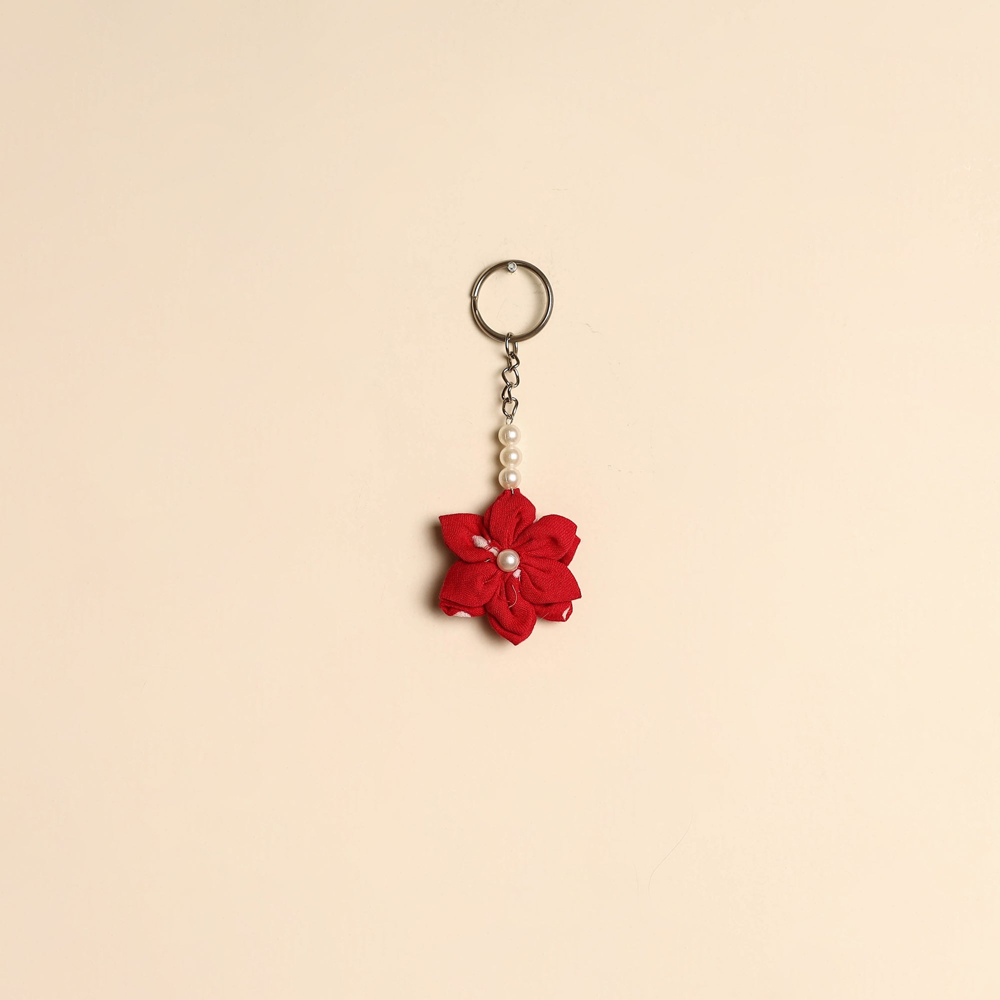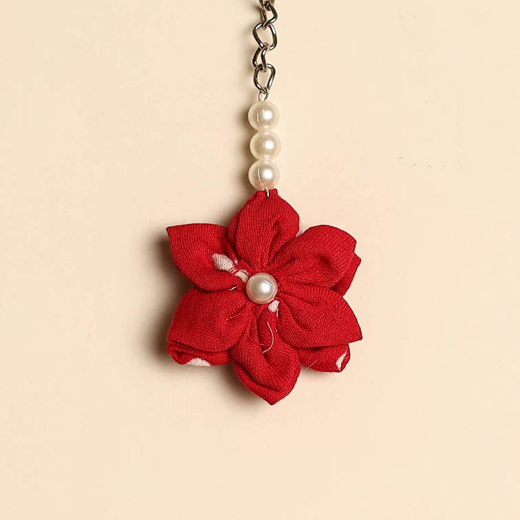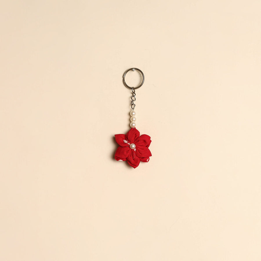 Handmade keychain crafted from cotton, featuring a charming fabart flower design with bead detailing. Lightweight and easy to carry, it adds a decorative touch to your keys, bags or pouches.