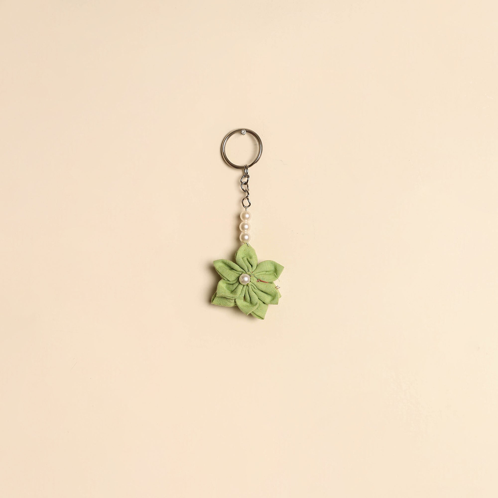 Handmade keychain crafted from cotton, featuring a charming fabart flower design with bead detailing. Lightweight and easy to carry, it adds a decorative touch to your keys, bags or pouches.