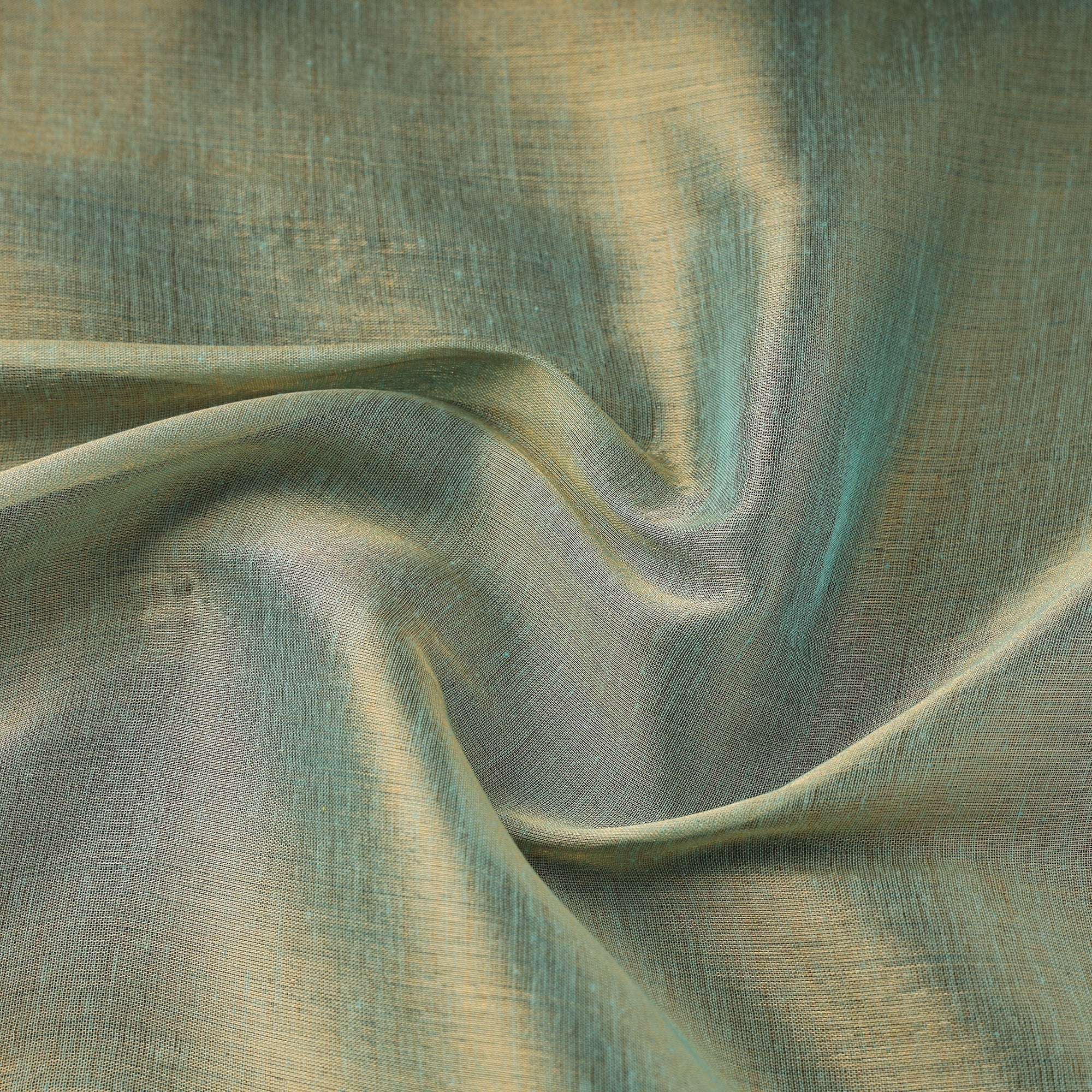 The fine tissue zari green plain fabric is a stunning showcase of Bengal's renowned weaving heritage. Crafted with cotton, this plain weave fabric, interlaced with delicate zari threads, offers a subtle shimmer, making it perfect for clothing.