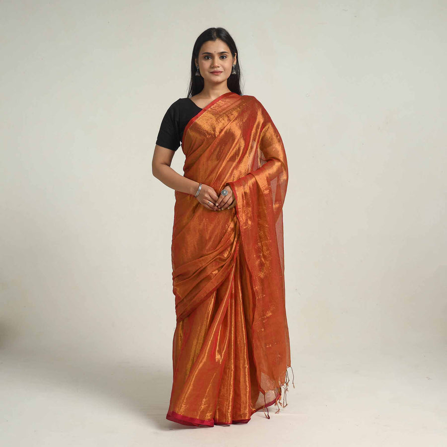 Indulge in the opulence of our fine-quality tissue zari work red saree, a true masterpiece of craftsmanship and elegance. This exquisite saree, detailed by skilled artisans, reflects centuries of traditional craftsmanship from West Bengal.