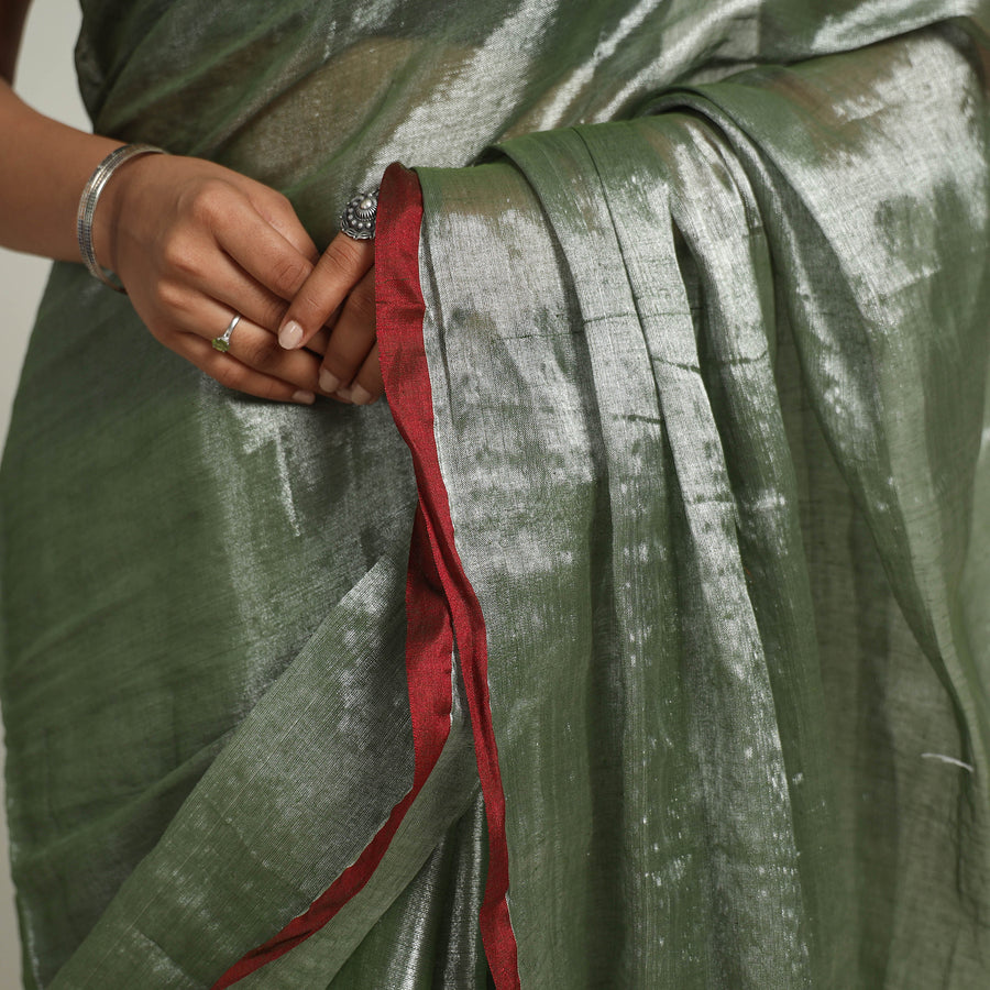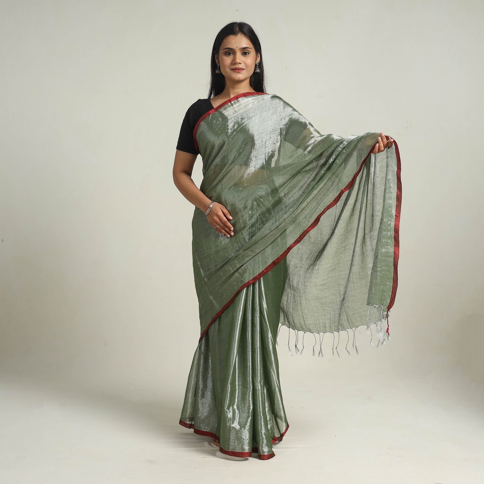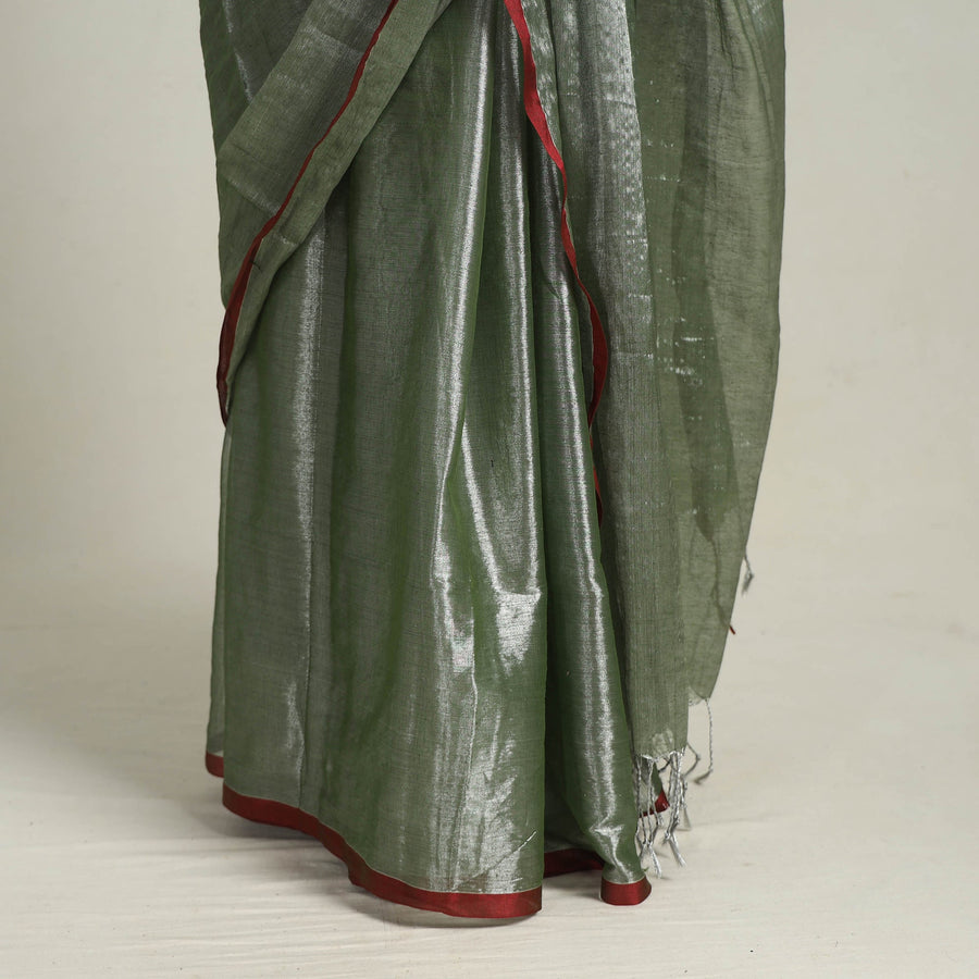 Indulge in the opulence of our fine-quality tissue zari work green saree, a true masterpiece of craftsmanship and elegance. This exquisite saree, detailed by skilled artisans, reflects centuries of traditional craftsmanship from West Bengal.