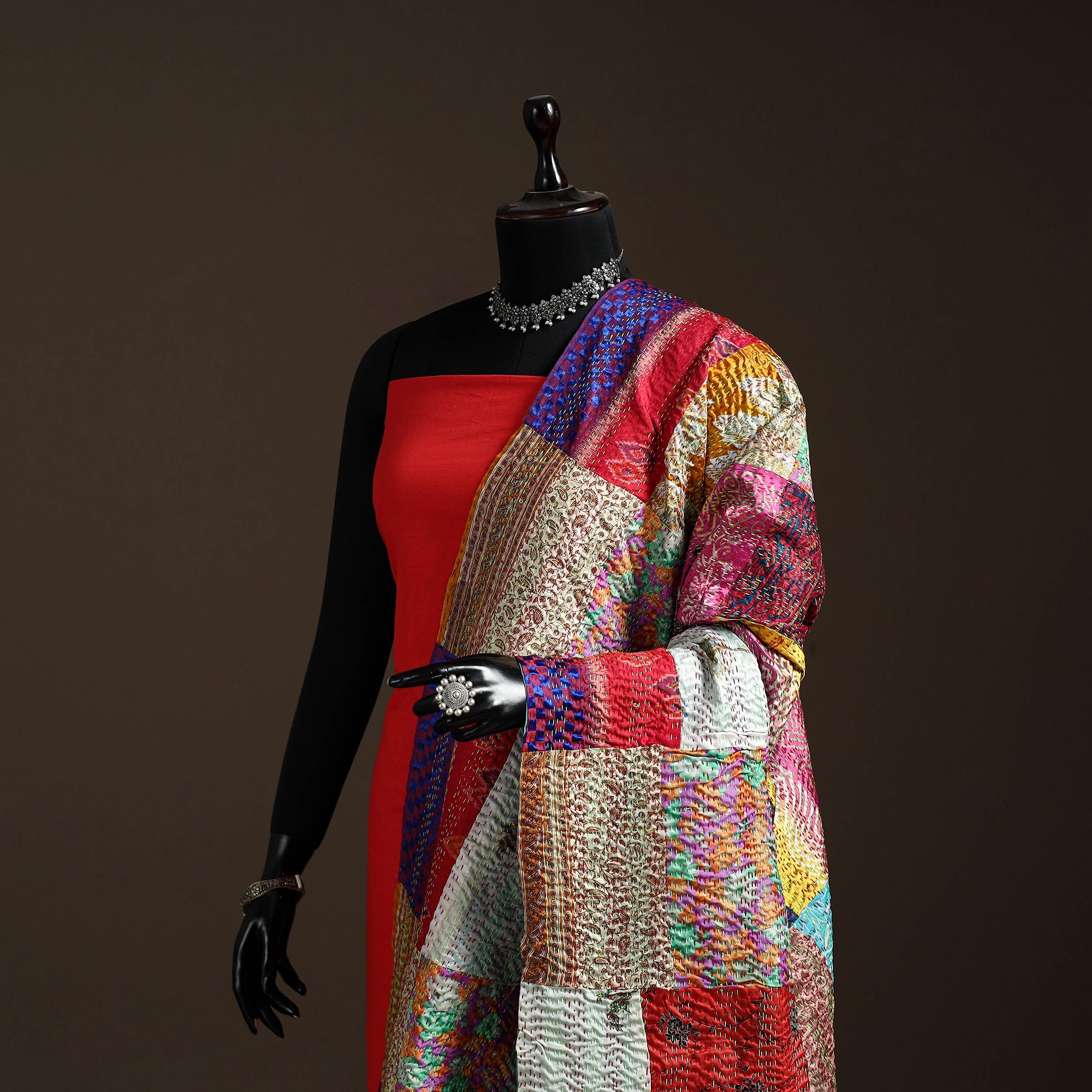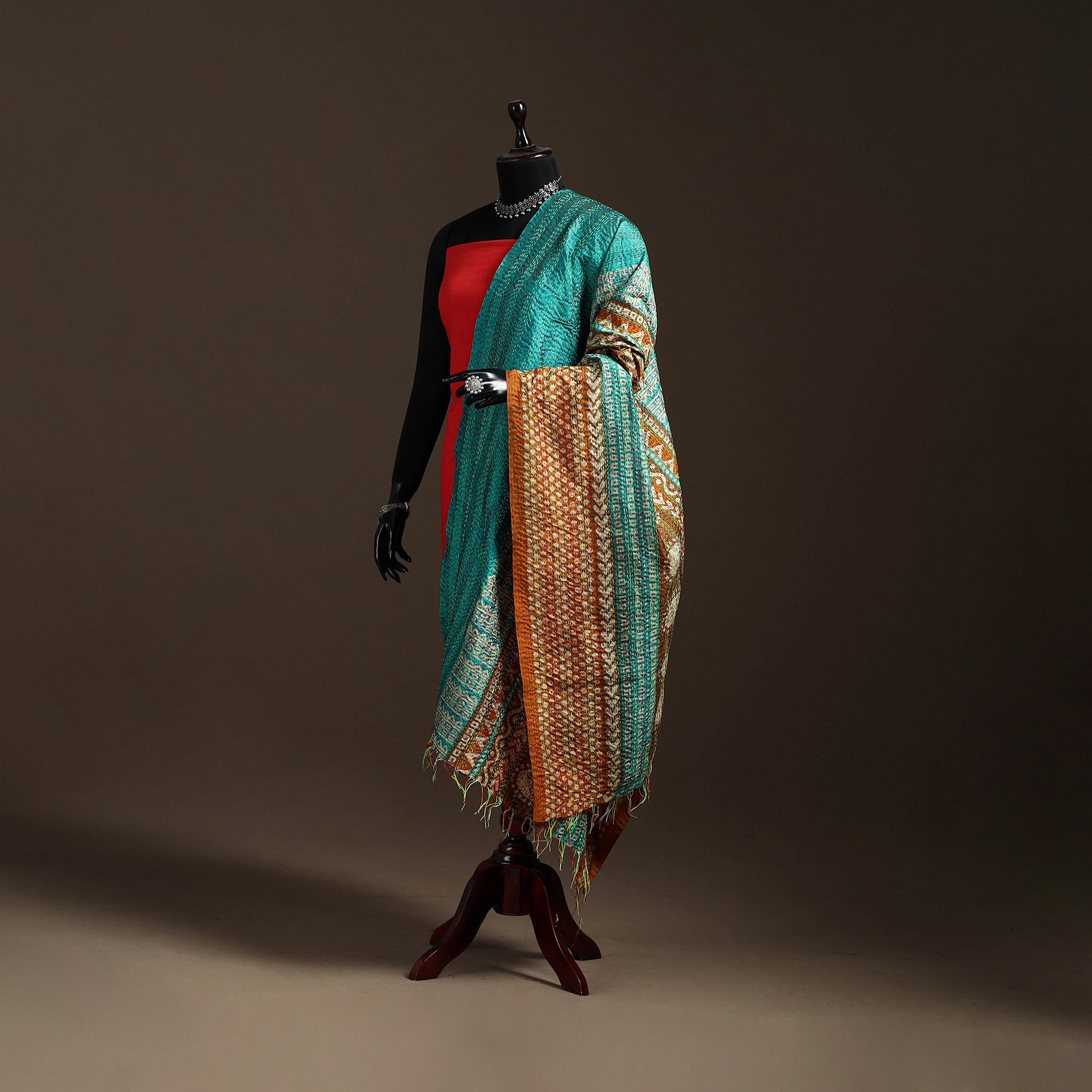 • Bengal Hand Embroidery Patchwork Reversible Silk Kantha Dupatta 20